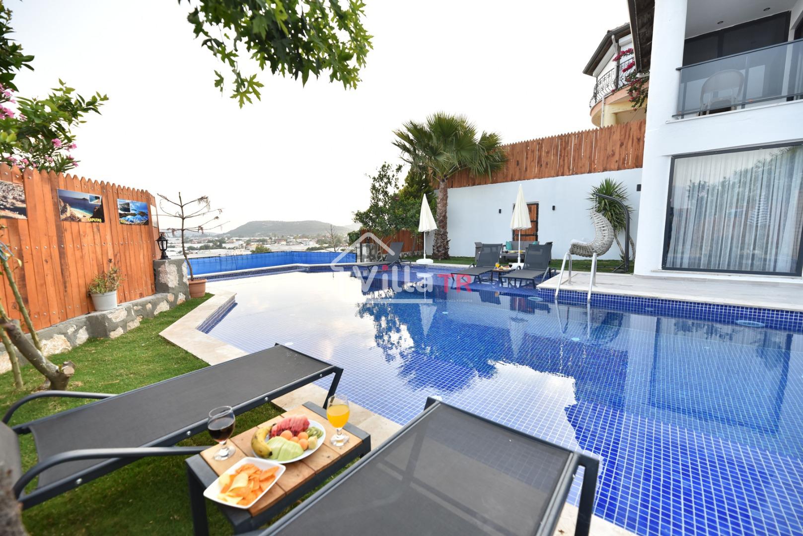 Villa Başar Kalkan / kınık bölgesinde yer almaktadır. Toplam 3 yatak odalı 6 kişilik konaklama kapasitesine sahiptir. Geniş aileler ve kalabalık arkadaş grupları için ideal bir seçenektir. Korunaklı yapıya sahiptir. Dışarıdan görünmez. Özel yüzme havuzu sığ havuzu , miniklerimiz için çocuk havuzu , çocuk oyun parkı ve masa tenisi bulunmaktadır. Araç otopark yeri mevcuttur. Doğa konumlu yer alan villamız sizlere eğlenceli şahane bir tatil imkanı sunmaktadır.