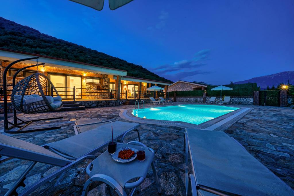 3 yatak odası, 3 banyo tuvalet bulunan villamız 6 kişilik konaklama kapasitesine sahiptir. 30 m2 büyüklüğünde özel havuzu, geniş yemyeşil bahçesi, barbekü, bahçe yemek masası ve lüks bahçe takımı bulunmaktadır. Zevkle döşenmiş lüks mobilyaları, taş mimarisi ve gözlerinizi alamayacağınız dağ- doğa manzarasıyla; farklı bir tatil deneyimi yaşamak isteyen misafirlerimize lüks bir doğa deneyimi sunmak için tasarlandı.