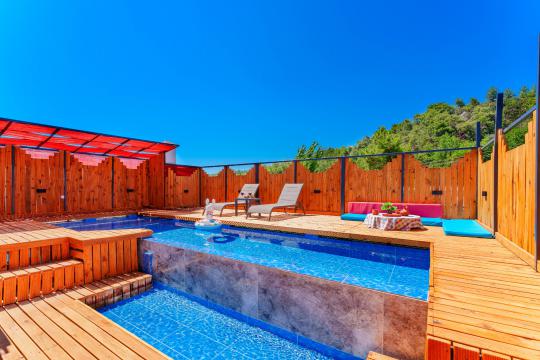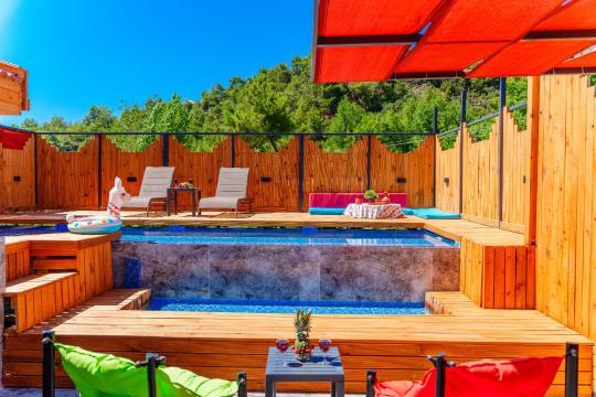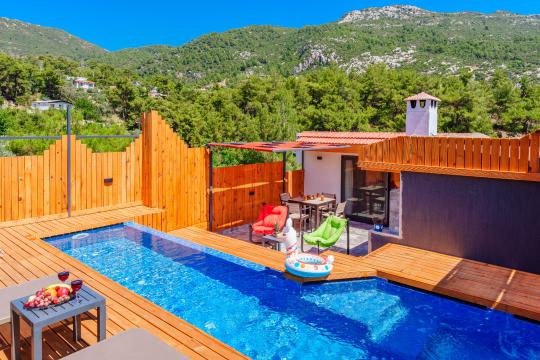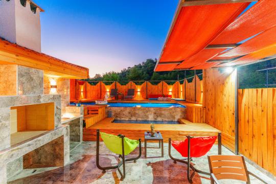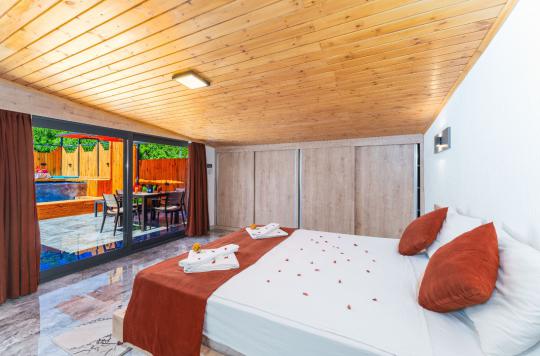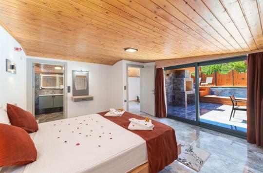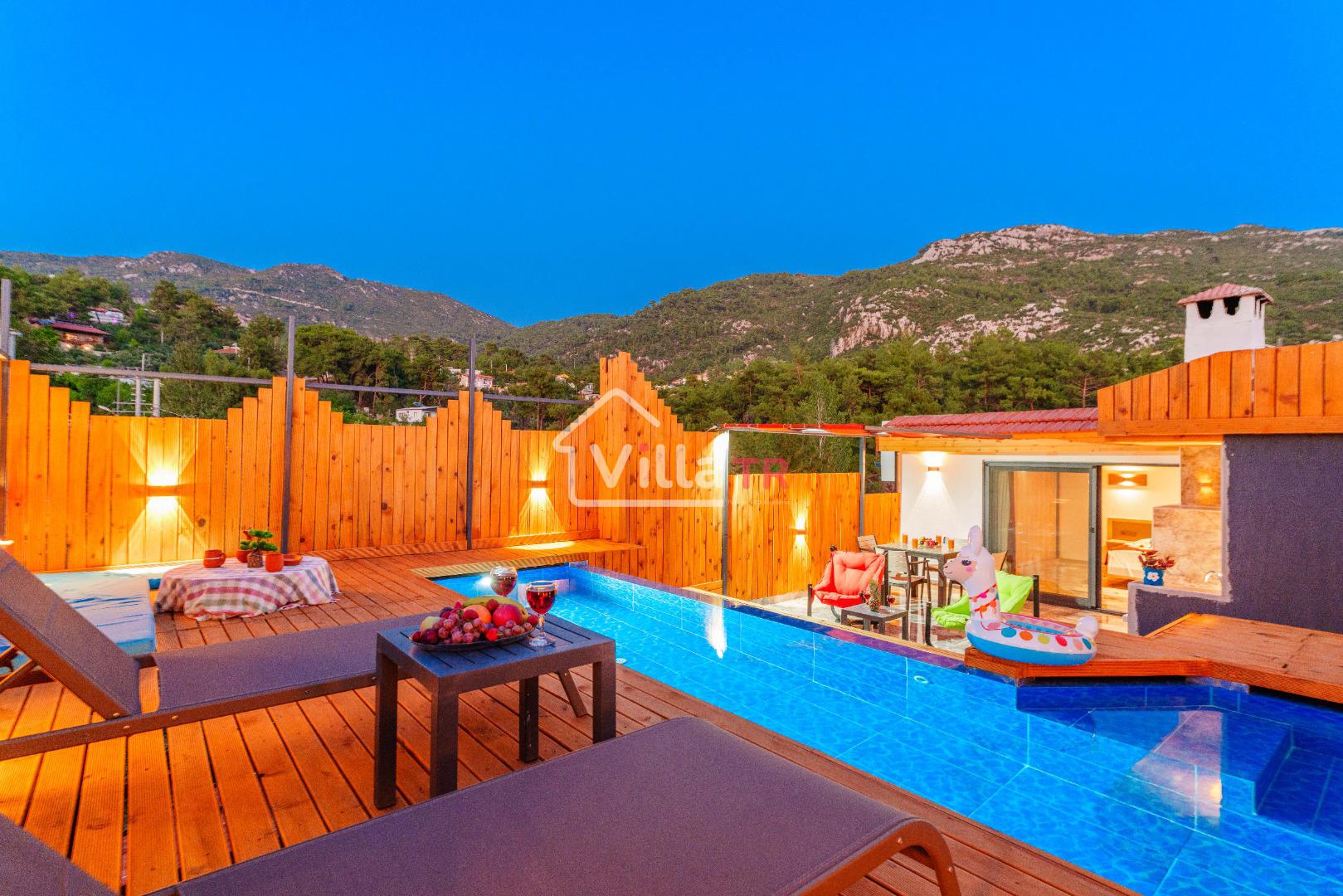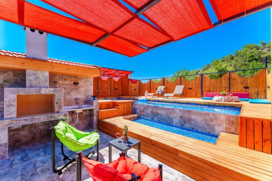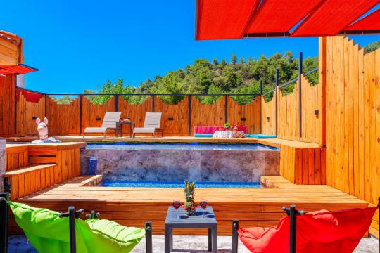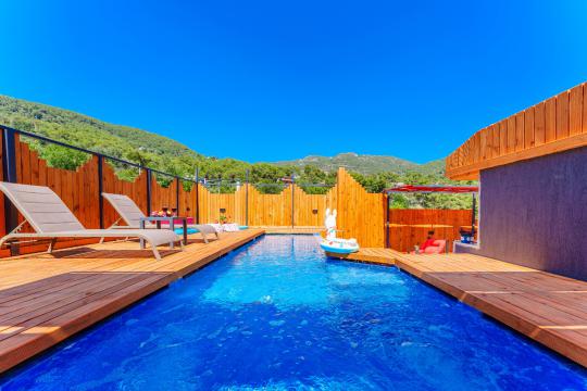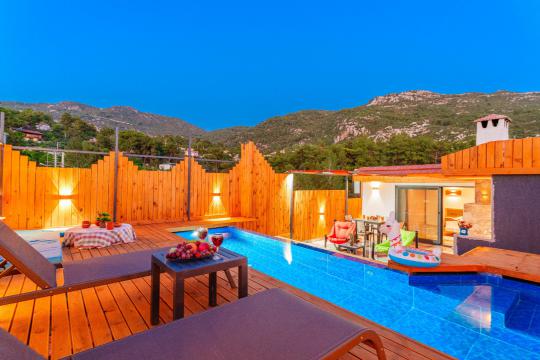 Kalkan İslamlar bölgesinde yer alan Suit Ustalı, üç katlı yapısıyla konfor ve lüksü bir arada sunuyor. Birinci katı kullanılmayan bu zarif villanın ikinci katında geniş bir salon ve bir çift kişilik yatak odası bulunmaktadır. Modern ve şık tasarımıyla dikkat çeken bu kat, misafirlerimize huzurlu ve rahat bir konaklama deneyimi sunar. Üçüncü katta ise yine bir çift kişilik yatak odası yer almakta olup, buradan çıkılan terasta serinlemek için ideal bir havuz bulunmaktadır. Suit Ustalı, sakin ve doğal ortamı ile misafirlerine unutulmaz bir tatil vaat ediyor. Villamızda konforlu bir konaklama yaparken, terasta güneşin tadını çıkarabilir ve serinleme havuzunda ferahlayabilirsiniz.