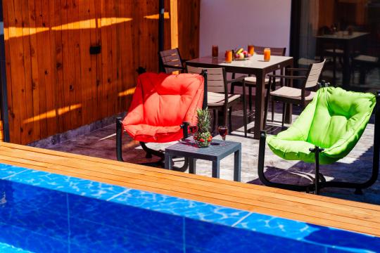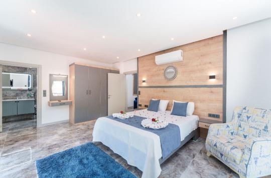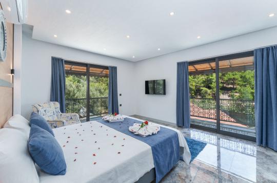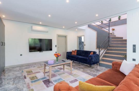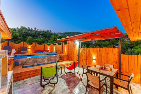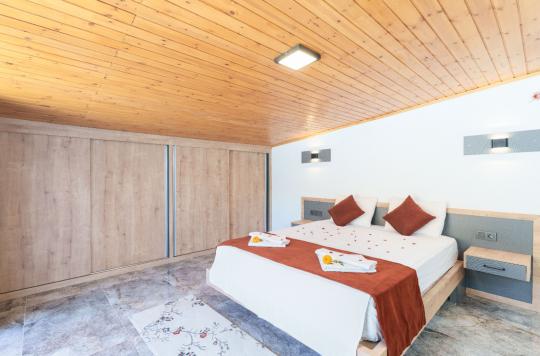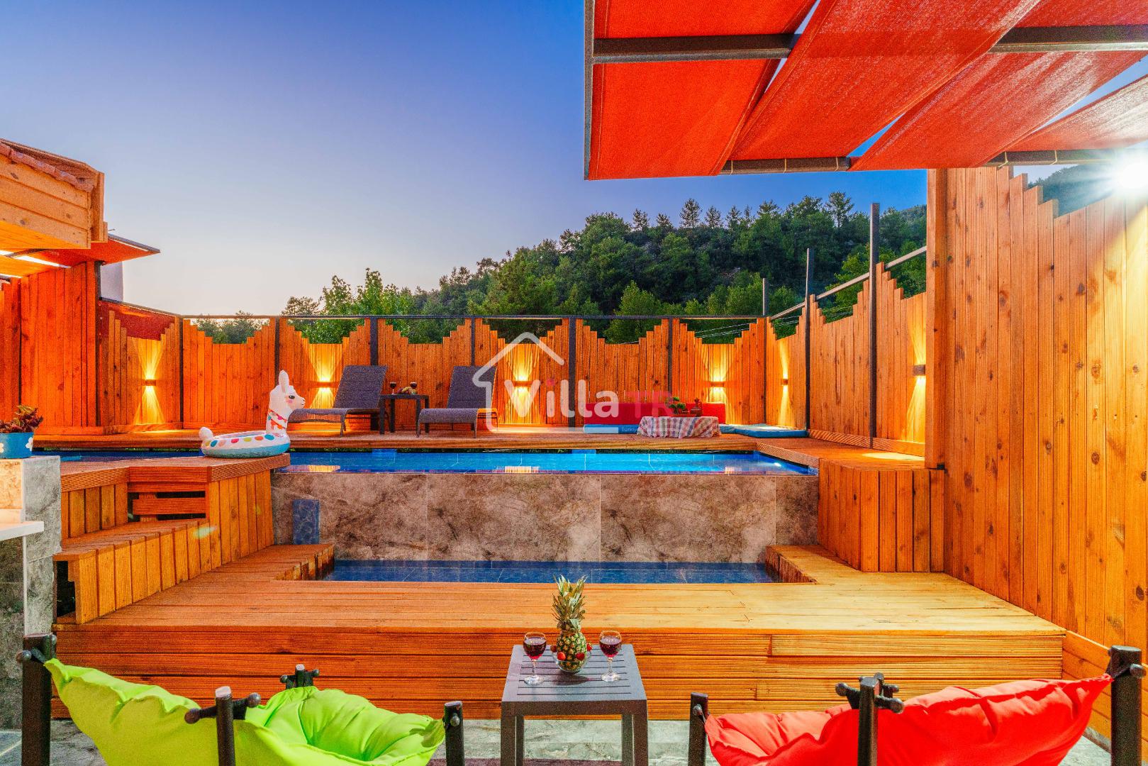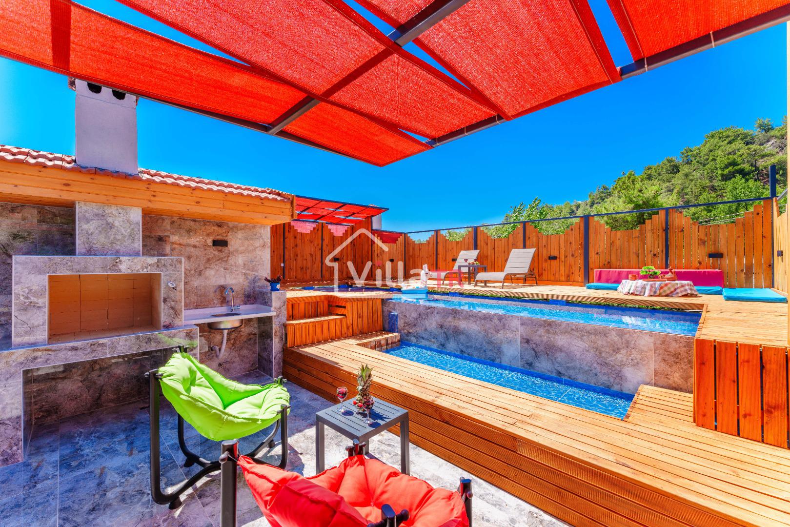 Kalkan İslamlar bölgesinde yer alan Suit Ustalı, üç katlı yapısıyla konfor ve lüksü bir arada sunuyor. Birinci katı kullanılmayan bu zarif villanın ikinci katında geniş bir salon ve bir çift kişilik yatak odası bulunmaktadır. Modern ve şık tasarımıyla dikkat çeken bu kat, misafirlerimize huzurlu ve rahat bir konaklama deneyimi sunar. Üçüncü katta ise yine bir çift kişilik yatak odası yer almakta olup, buradan çıkılan terasta serinlemek için ideal bir havuz bulunmaktadır. Suit Ustalı, sakin ve doğal ortamı ile misafirlerine unutulmaz bir tatil vaat ediyor. Villamızda konforlu bir konaklama yaparken, terasta güneşin tadını çıkarabilir ve serinleme havuzunda ferahlayabilirsiniz.