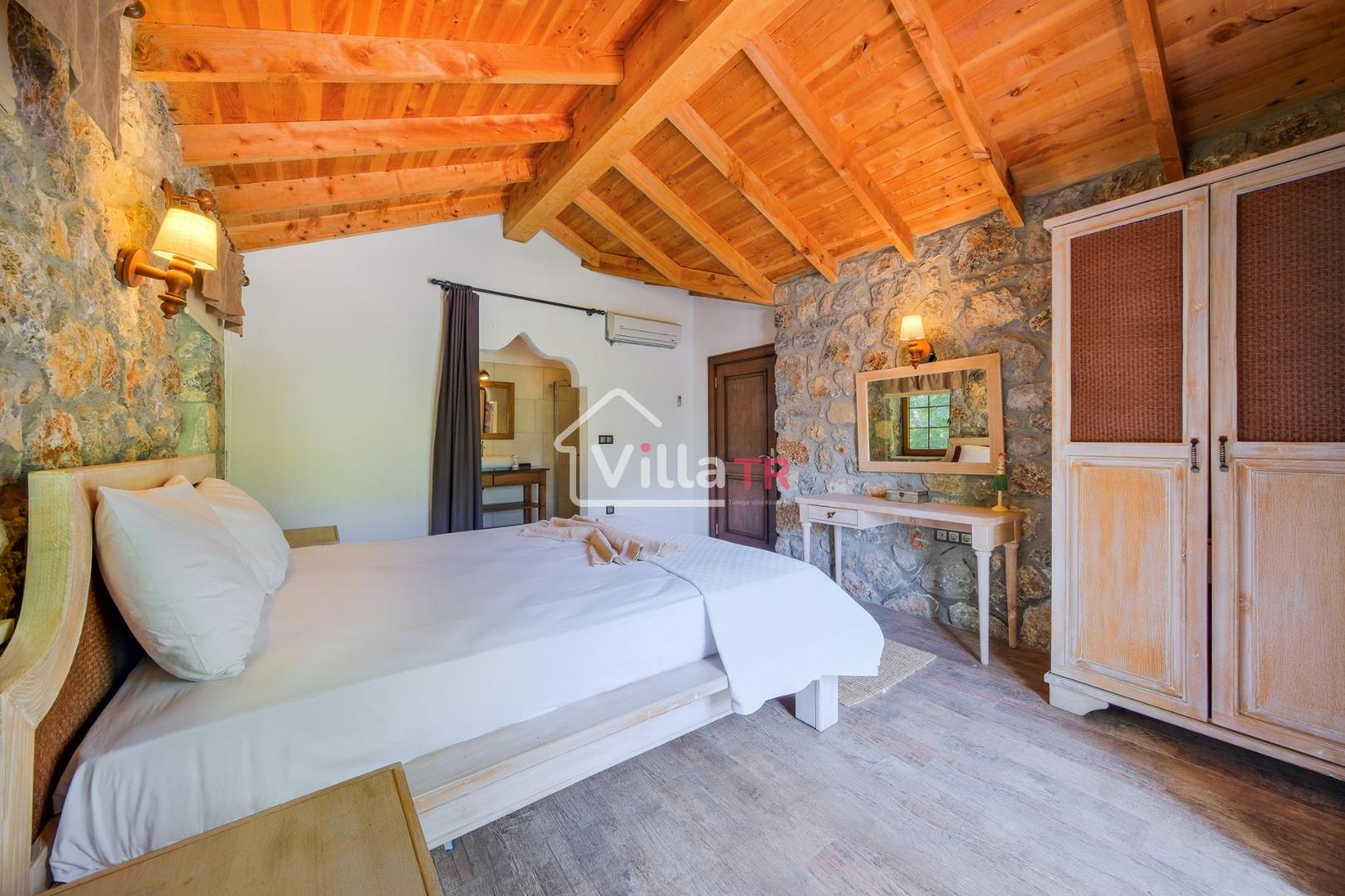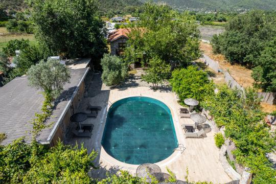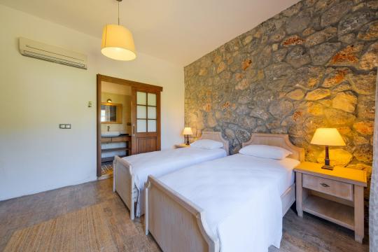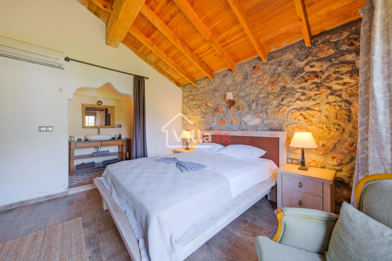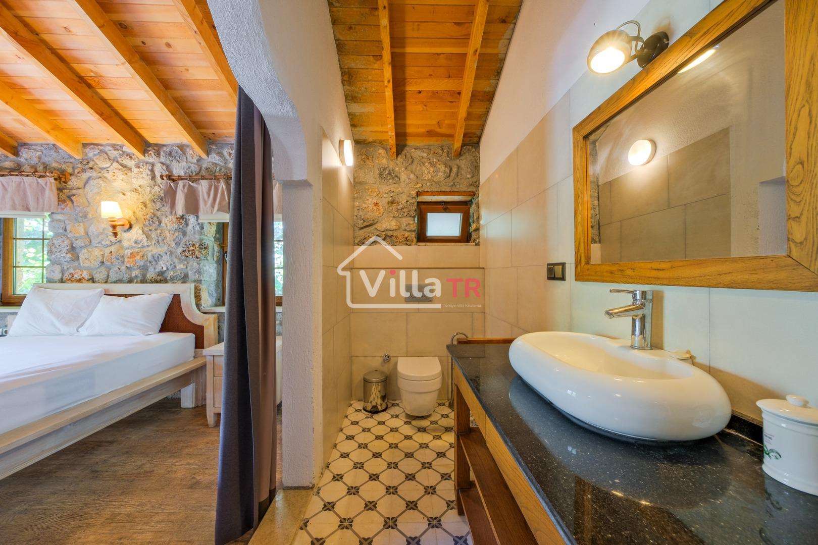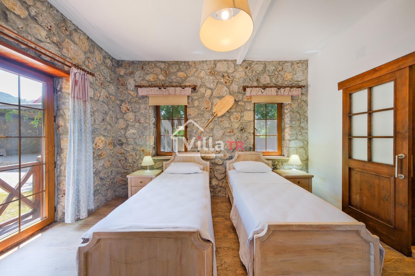 Toplam 10 kişilik kapasitesi ve 5 yatak odası ile kalabalık konaklamalara rahatlıkla uyum sağlar. Her odanın kendine ait banyosu bulunur, bu da tüm konuklar için kişisel alan sağlar. Villa, doğanın kalbinde olmasına rağmen Fethiye merkezine ve Ölüdeniz sahiline yalnızca 10-15 dakika uzaklıktadır. Böylece sakinliği yaşarken aynı zamanda şehir olanaklarına da kolayca ulaşabilirsiniz.