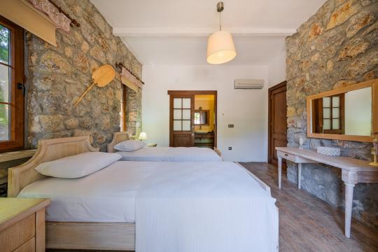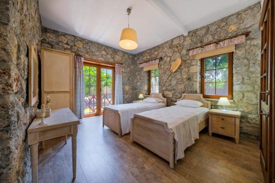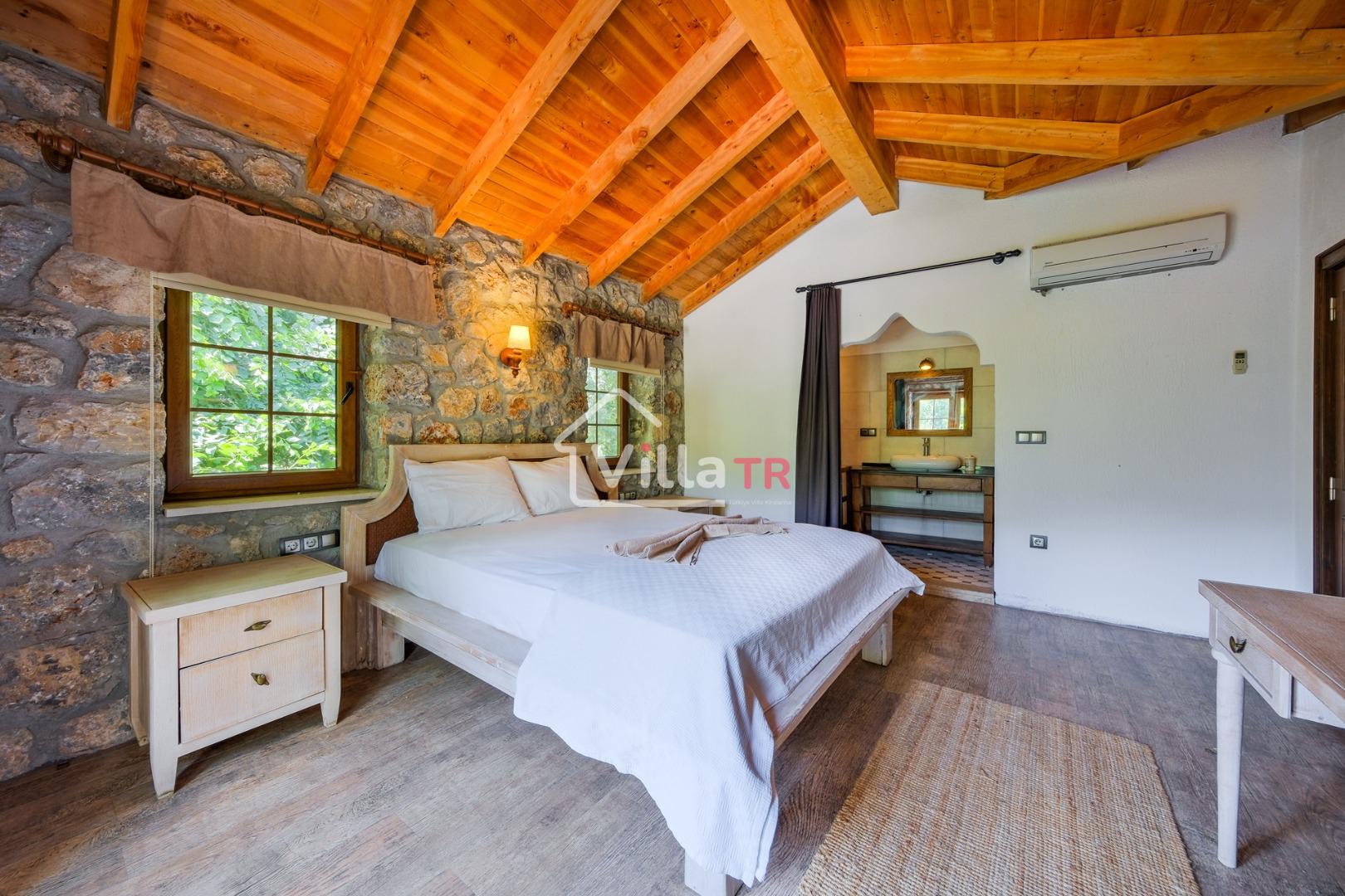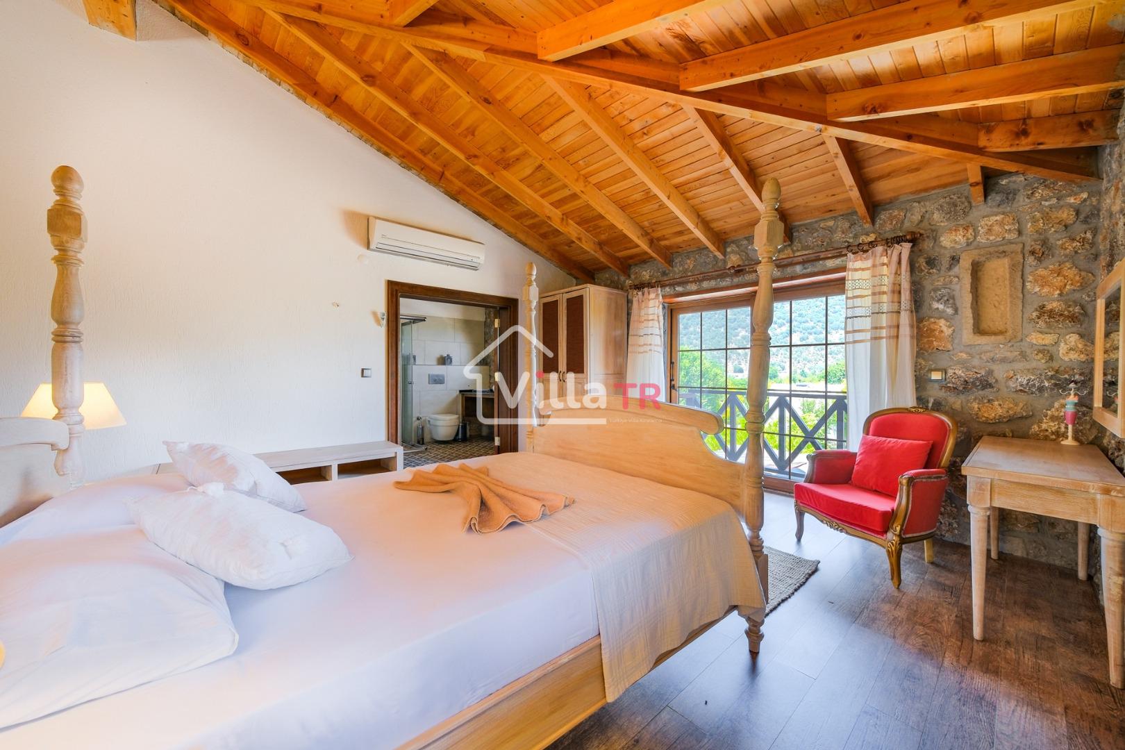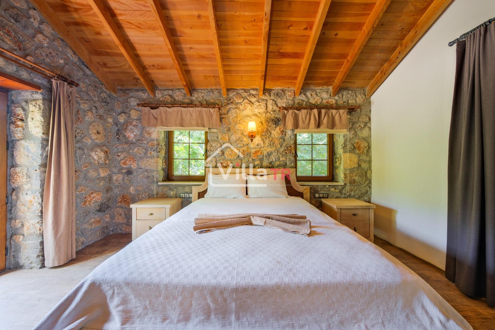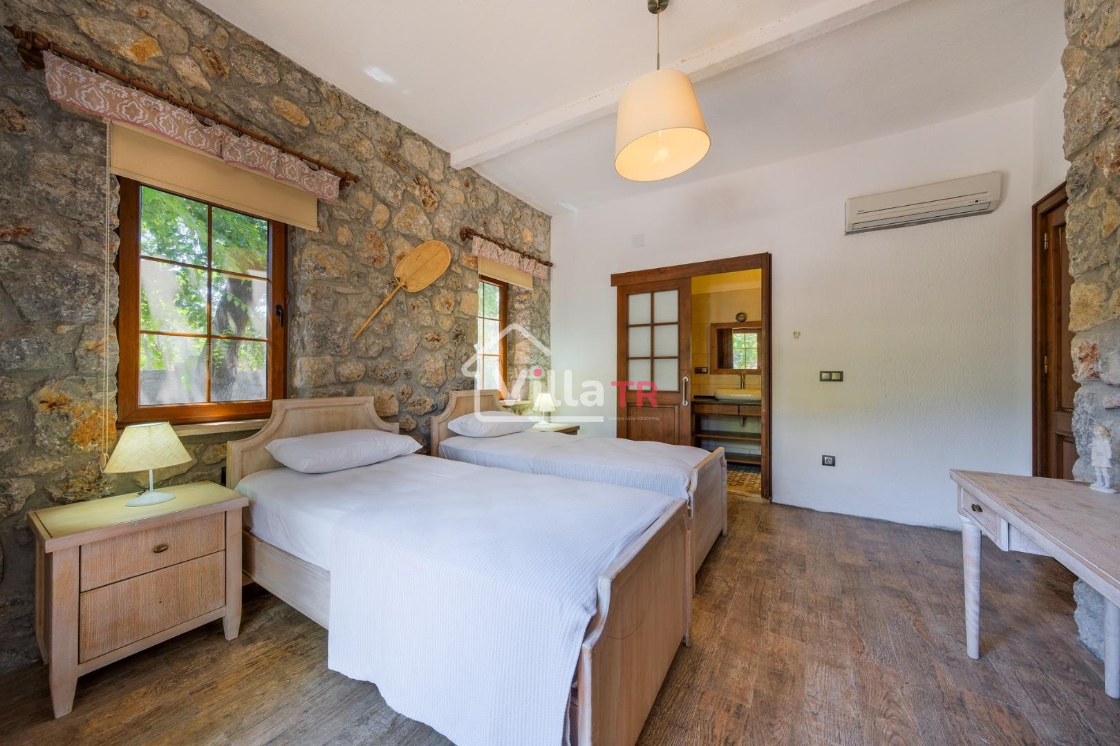 Toplam 10 kişilik kapasitesi ve 5 yatak odası ile kalabalık konaklamalara rahatlıkla uyum sağlar. Her odanın kendine ait banyosu bulunur, bu da tüm konuklar için kişisel alan sağlar. Villa, doğanın kalbinde olmasına rağmen Fethiye merkezine ve Ölüdeniz sahiline yalnızca 10-15 dakika uzaklıktadır. Böylece sakinliği yaşarken aynı zamanda şehir olanaklarına da kolayca ulaşabilirsiniz.