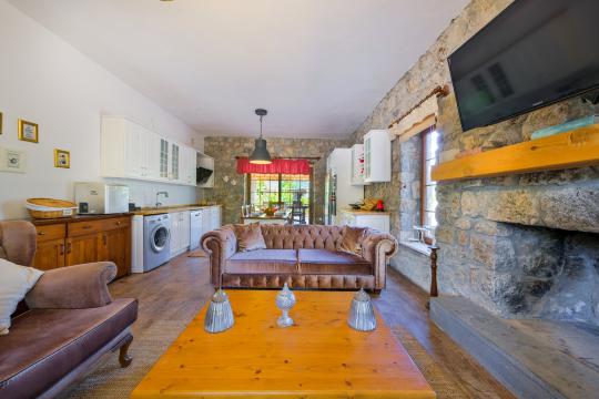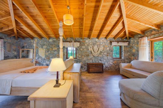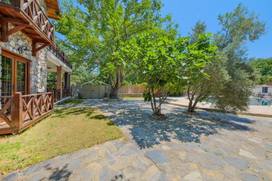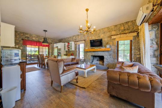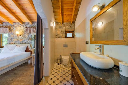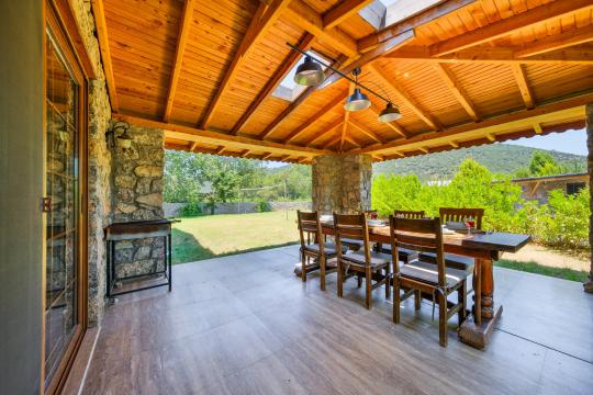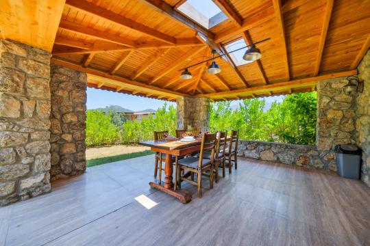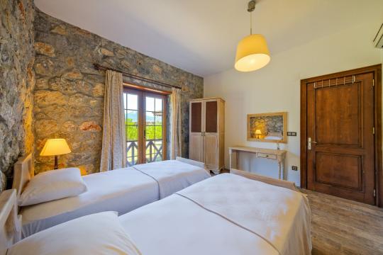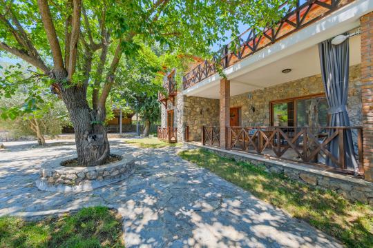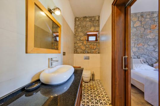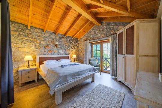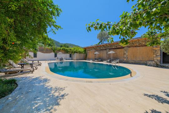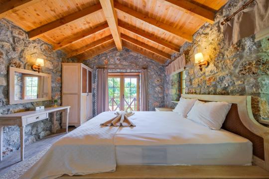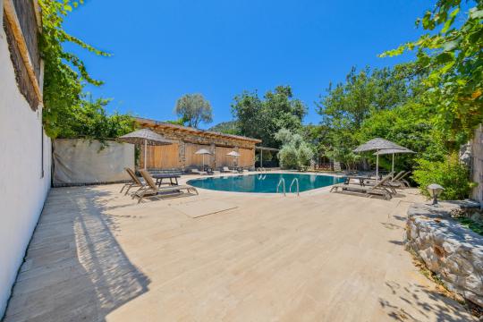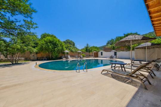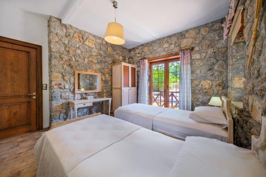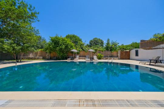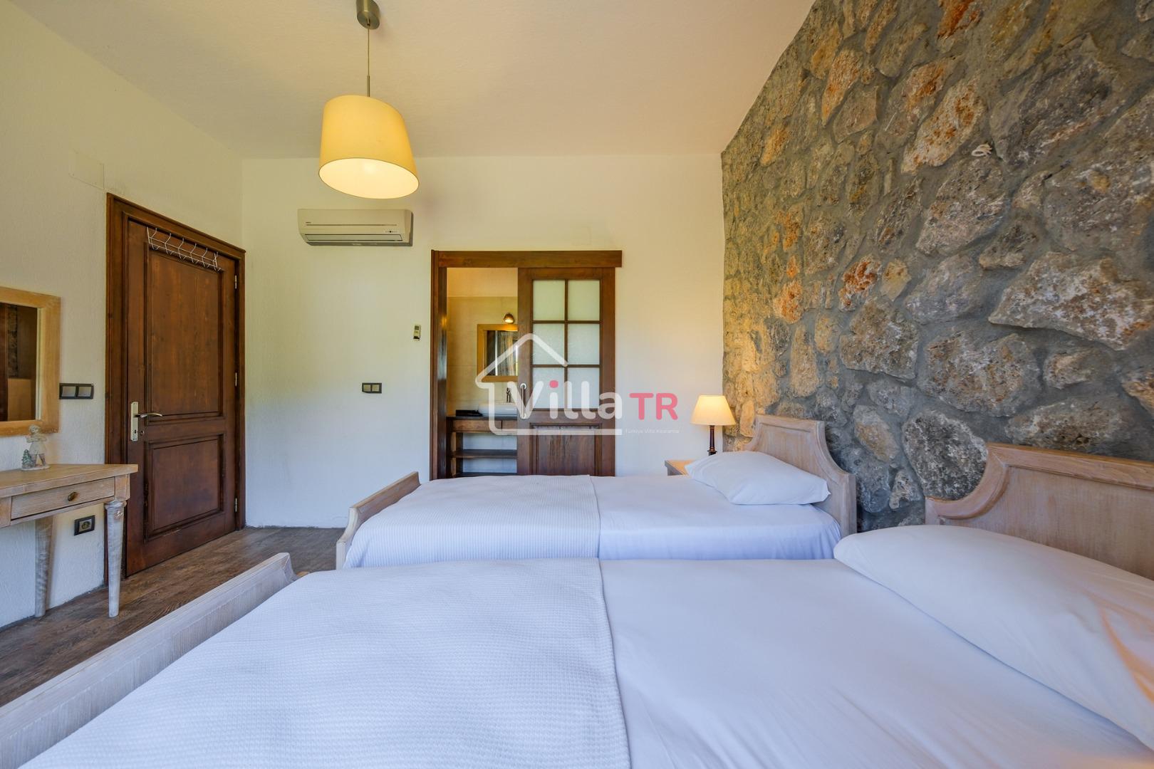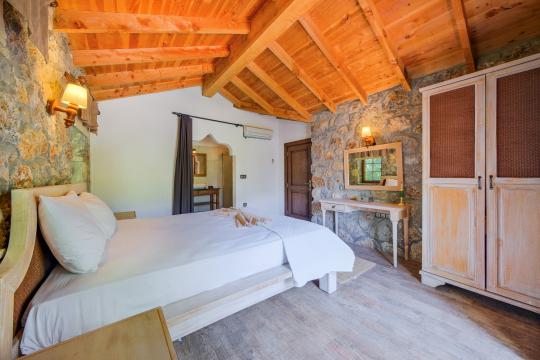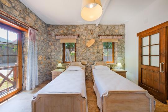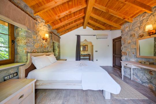 Toplam 10 kişilik kapasitesi ve 5 yatak odası ile kalabalık konaklamalara rahatlıkla uyum sağlar. Her odanın kendine ait banyosu bulunur, bu da tüm konuklar için kişisel alan sağlar. Villa, doğanın kalbinde olmasına rağmen Fethiye merkezine ve Ölüdeniz sahiline yalnızca 10-15 dakika uzaklıktadır. Böylece sakinliği yaşarken aynı zamanda şehir olanaklarına da kolayca ulaşabilirsiniz.