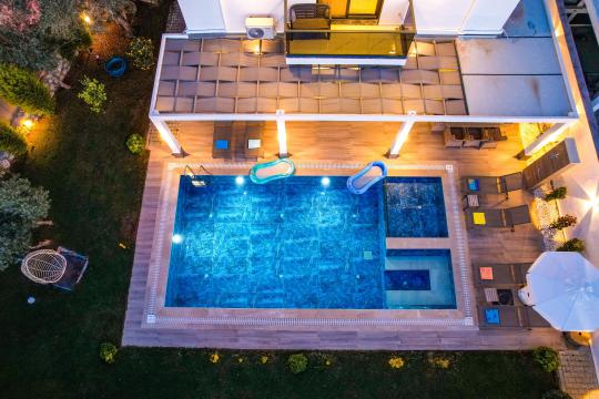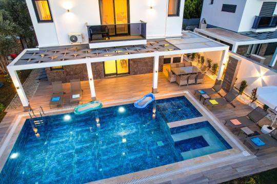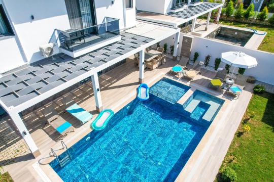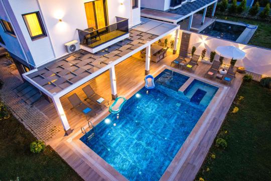 Villada hem büyükler hem çocuklar düşünülmüştür. Özel yüzme havuzu 7 metre uzunluğunda ve 4.5 metre genişliğindedir. Bunun yanında 0.40 cm derinliğinde ve 2.5 metre uzunluğunda ayrı bir çocuk havuzu da mevcuttur. Çocuklar güvenli bir şekilde havuz keyfi yaşarken, siz de gönül rahatlığıyla dinlenebilirsiniz.