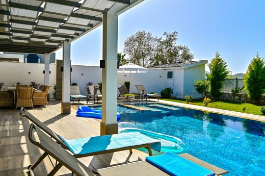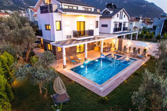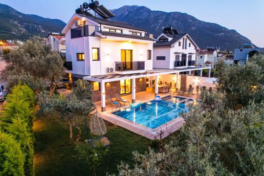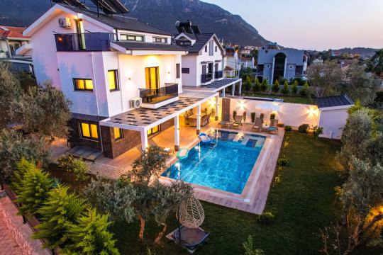 Villa Almilalin Fethiye / Ovacık mevkiisinde yer almaktadır. Toplam 6 yatak odası mevcut olup 10 Kişilik konaklama kapasitesine sahiptir. Suit yatak odasında kişiye özel jakuzisi bulunmaktadır. Geniş aileler ve kalabalık arkadaş grupları için ideal bir seçenektir. Havuz ve Havuz terası kısmi korunaklıdır. Özel yüzme havuzu , geniş bahçe alanı , miniklerimiz için çocuk havuzu ve 2 araç otopark yeri mevcuttur. Villamızda siz değerli misafirlerimiz için herşey ayrıntılı bir şekilde düşünülmüştür. Gönül rahatlığı ile kendi evinizde gibi hissedeceğiniz şahane bir tail geçirebilirsiniz.