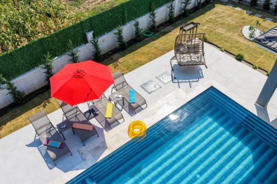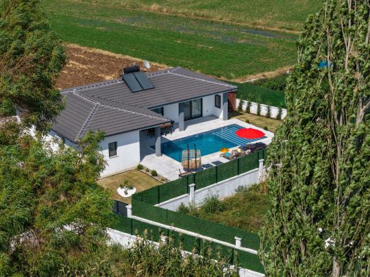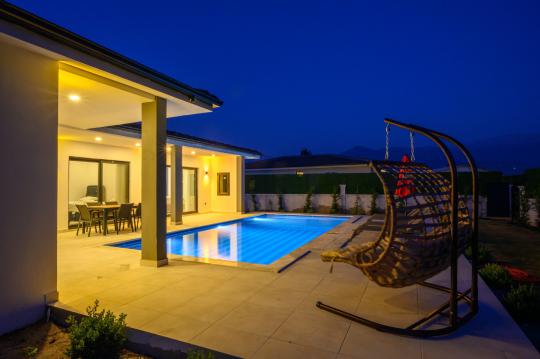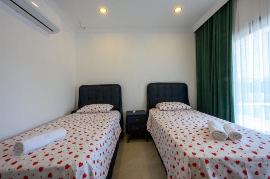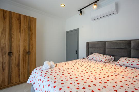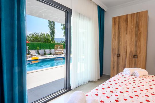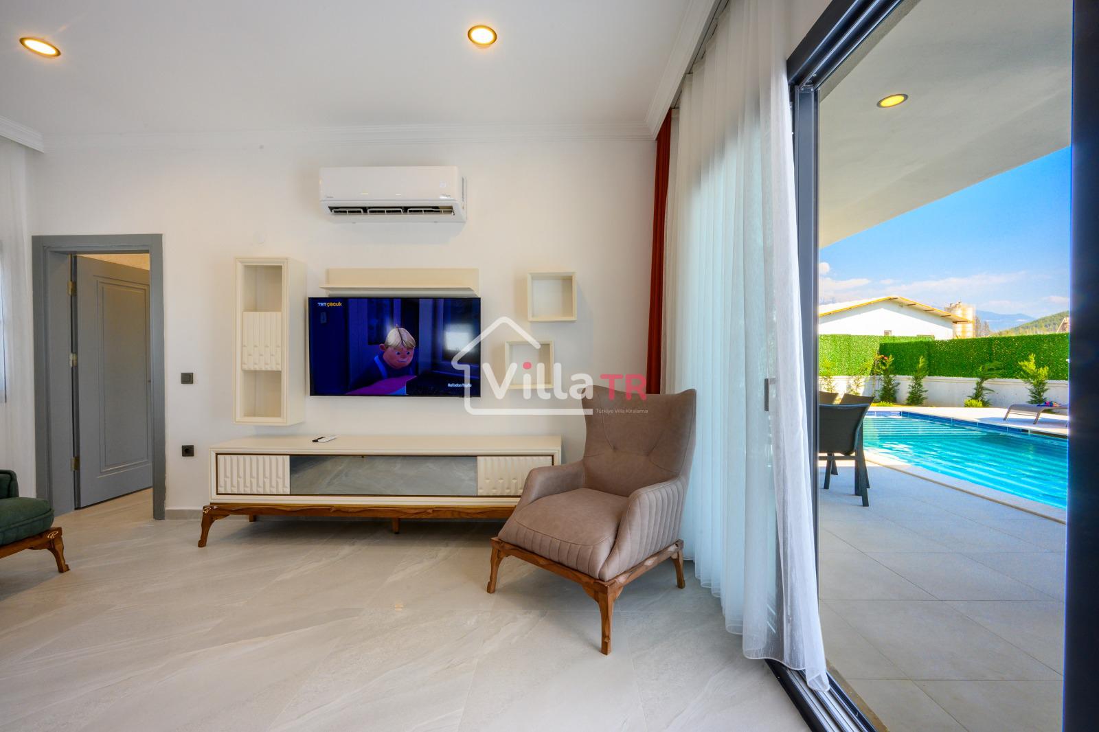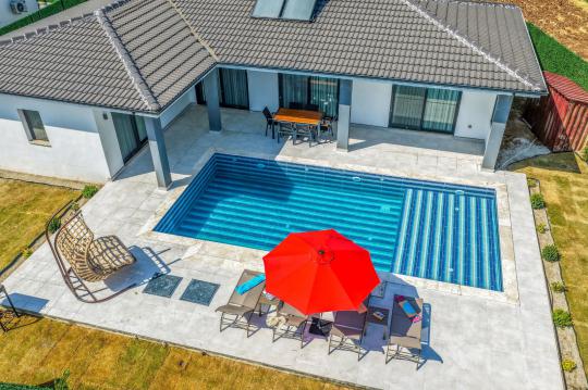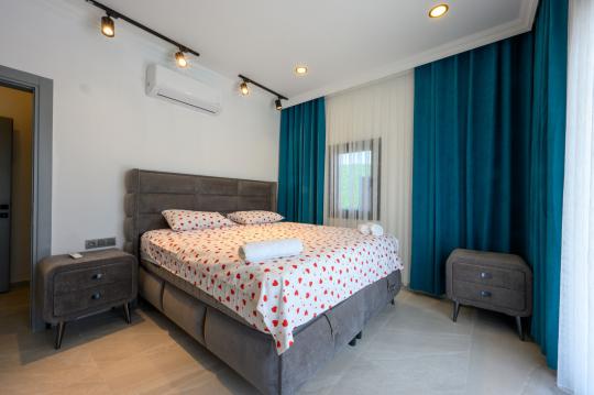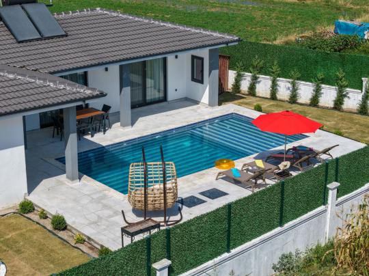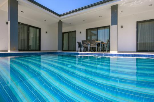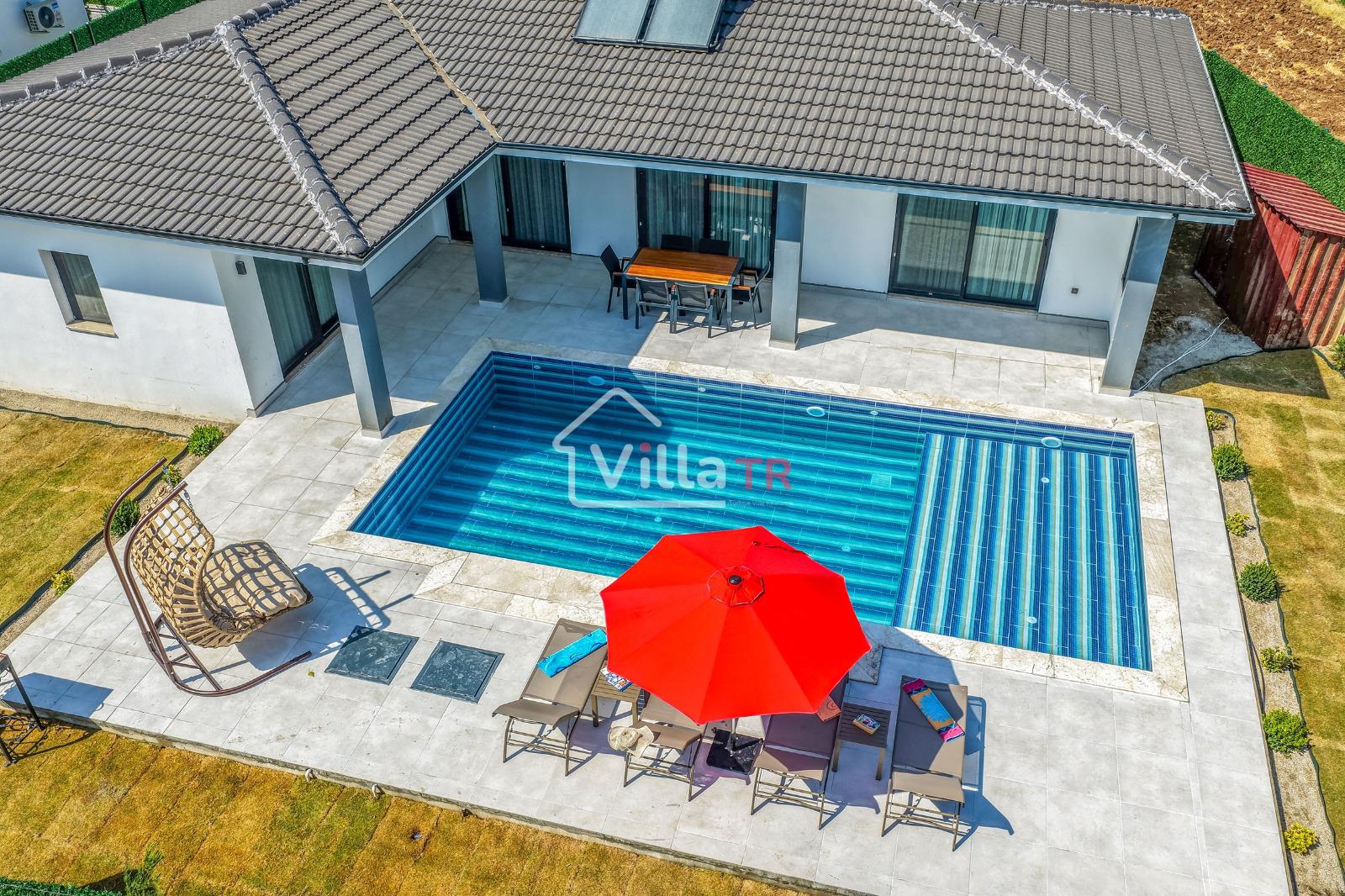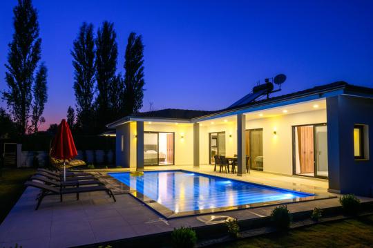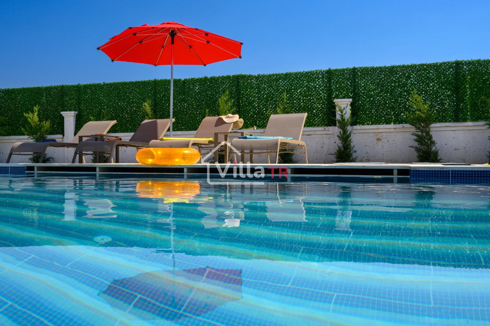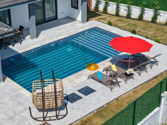3 yatak odası ve 6 kişilik kapasitesiyle ailelere hitap eden villamızda, özel havuz ve korunaklı bahçe sayesinde tamamen size ait huzurlu bir ortamda tatil yapabilirsiniz. Ferah ve aydınlık yaşam alanları, şık mobilyaları ve ihtiyaçlarınıza cevap verecek mutfağıyla konfor ön planda tutulmuştur.
