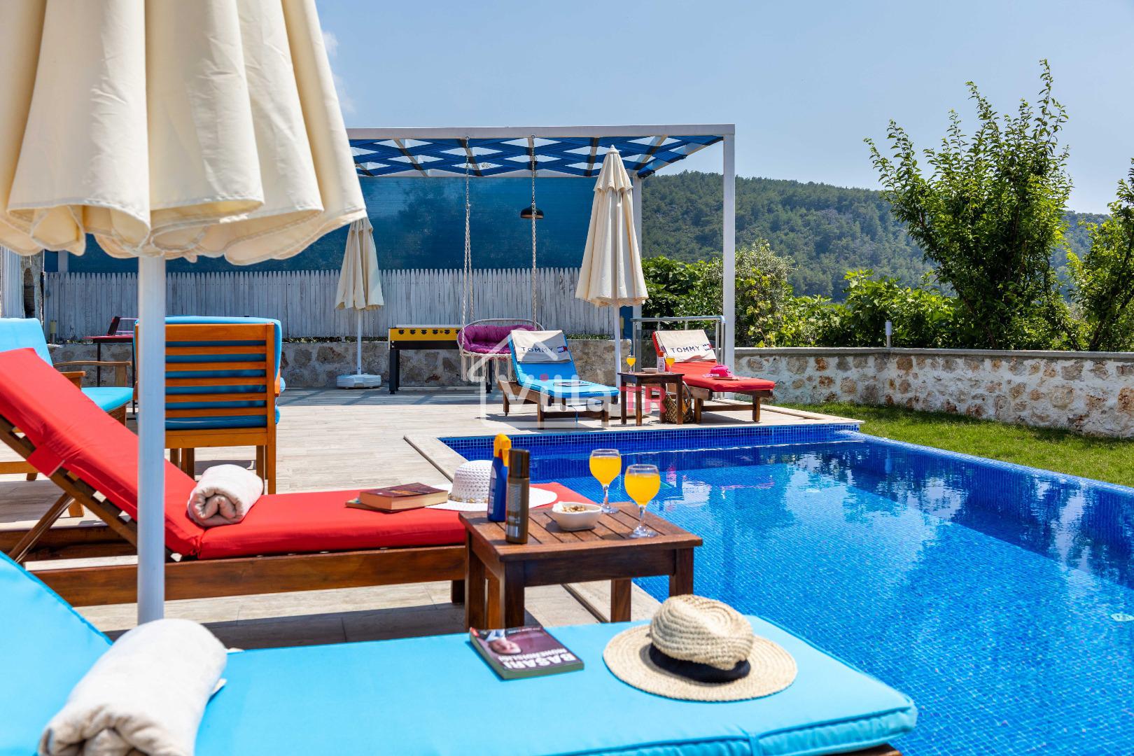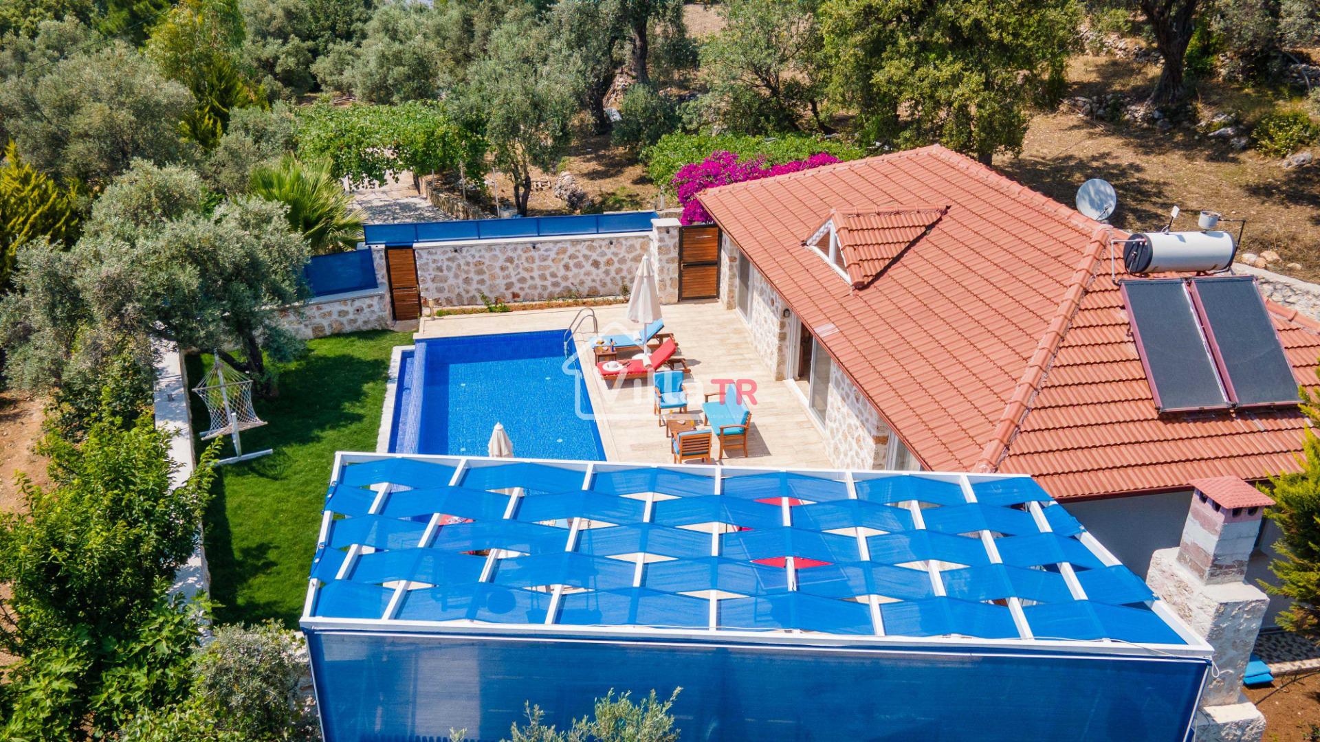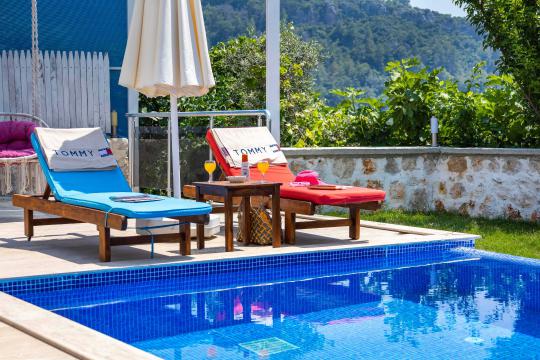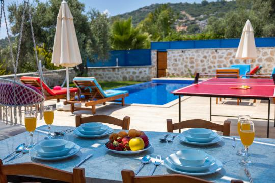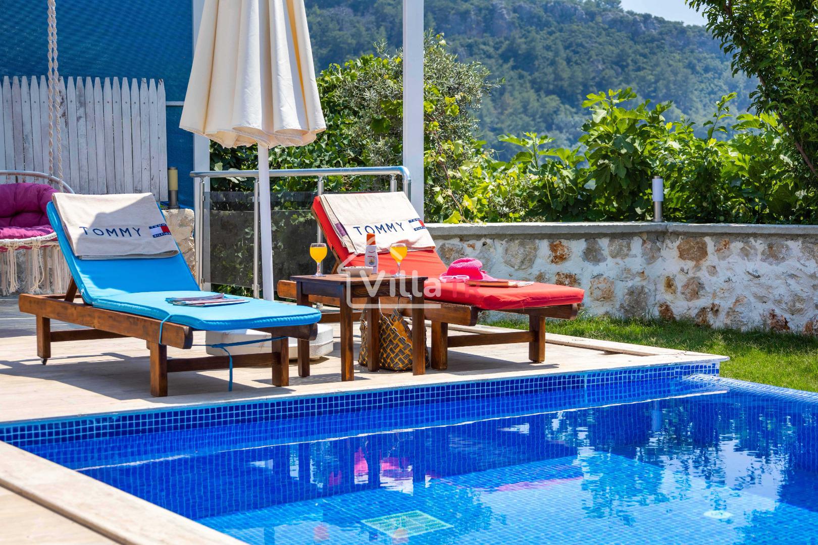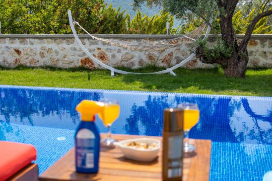 Villa Aven, Kalkan'ın Üzümlü bölgesinde konumlanmış, geniş bahçesi ve modern mimarisiyle dikkat çeken villamızdır. 2 yatak odası ve 2 banyo tuvaleti bulunan villamız 4 kişilik konaklama kapasitesiyle çekirdek aileler ve balayı çiftleri için ideal bir seçenek olarak öne çıkmaktadır. Ebeveyn yatak odasında jakuzi bulunan villamızın geniş bahçe alanında masa tenisi, langırt, hamak ve bahçe salıncağı bulunmaktadır. Korunaklı özel yüzme havuzu, konforlu şezlongları ve yaz aylarının vazgeçilmezi barbeküsüyle villamız, gözlerden uzak ve huzurlu bir tatil geçirmek isteyen misafirlerini bekliyor.