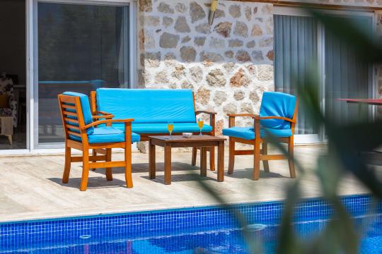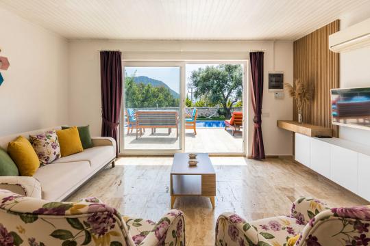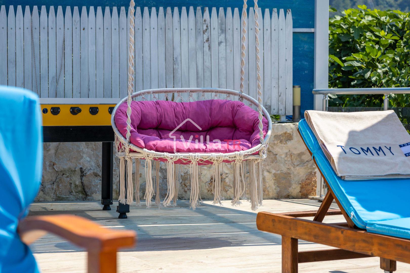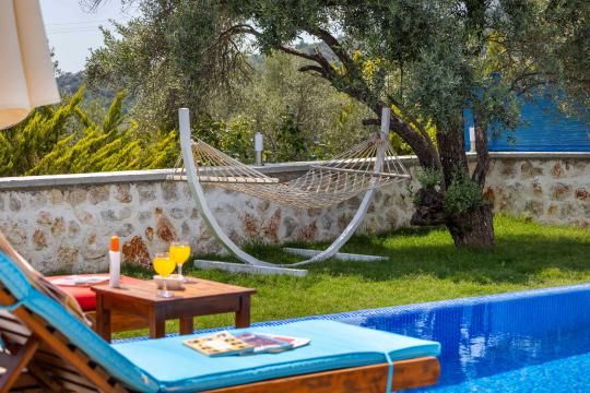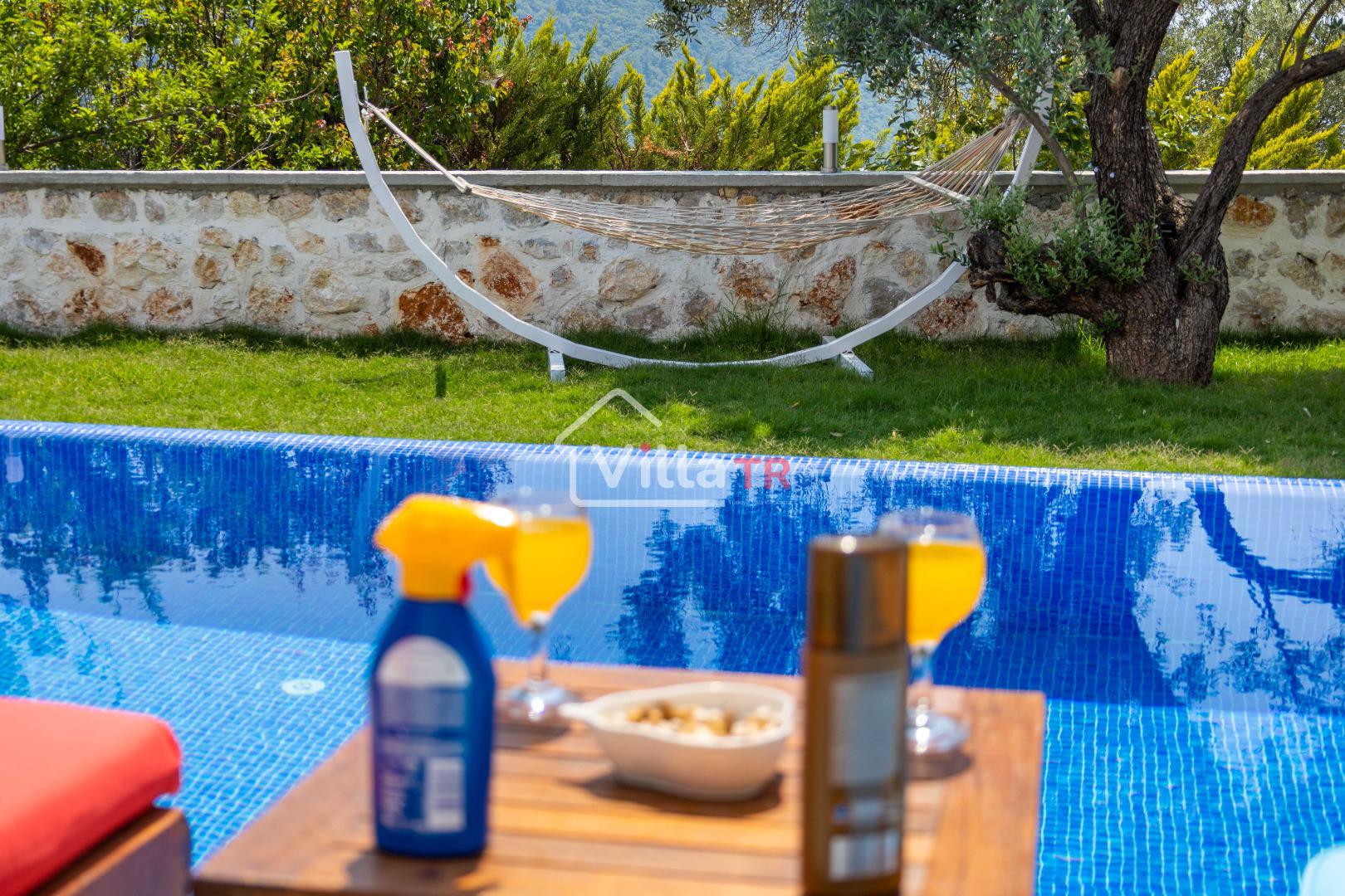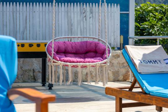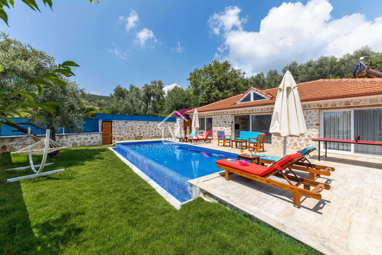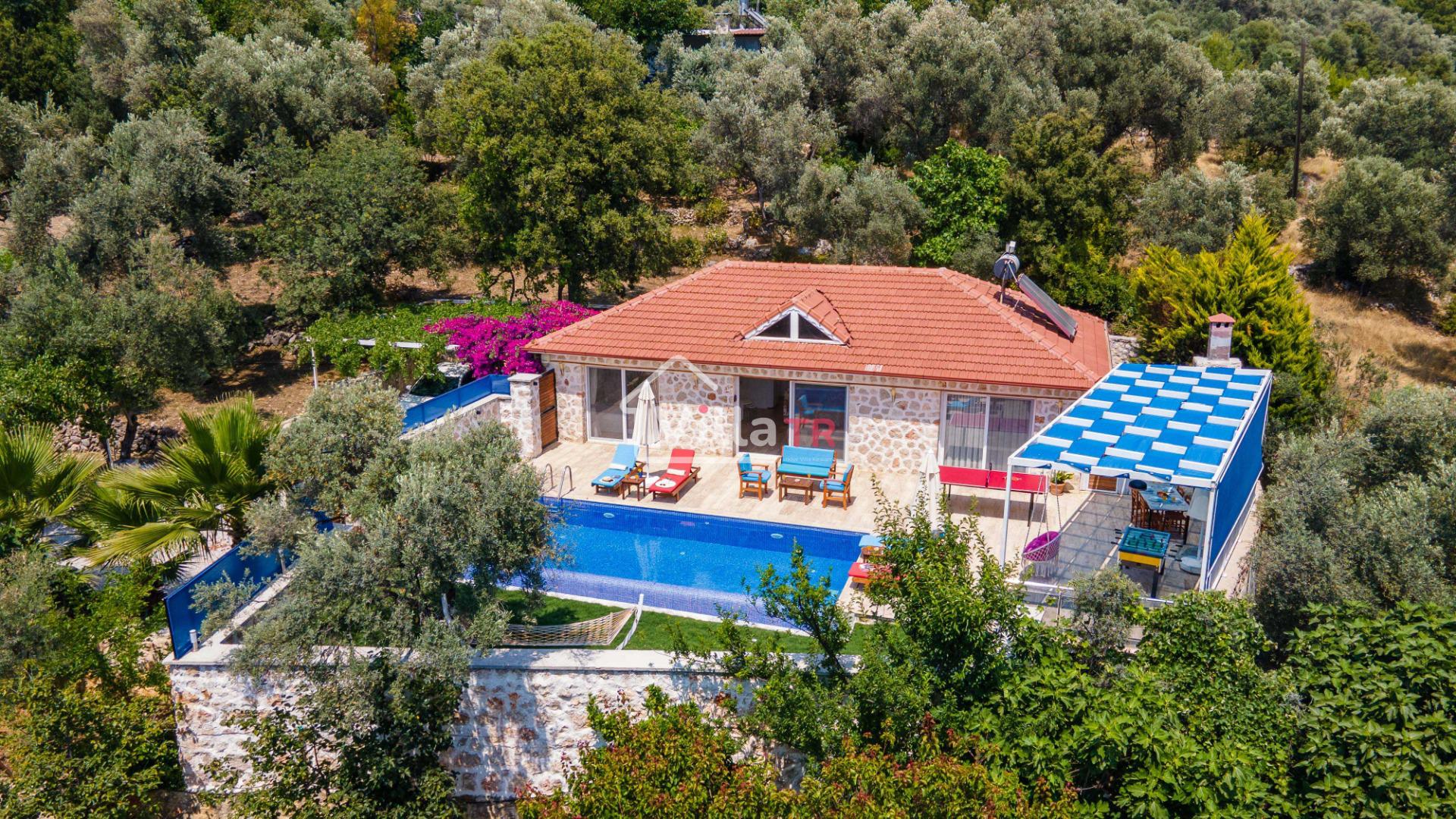 Villa Aven, Kalkan'ın Üzümlü bölgesinde konumlanmış, geniş bahçesi ve modern mimarisiyle dikkat çeken villamızdır. 2 yatak odası ve 2 banyo tuvaleti bulunan villamız 4 kişilik konaklama kapasitesiyle çekirdek aileler ve balayı çiftleri için ideal bir seçenek olarak öne çıkmaktadır. Ebeveyn yatak odasında jakuzi bulunan villamızın geniş bahçe alanında masa tenisi, langırt, hamak ve bahçe salıncağı bulunmaktadır. Korunaklı özel yüzme havuzu, konforlu şezlongları ve yaz aylarının vazgeçilmezi barbeküsüyle villamız, gözlerden uzak ve huzurlu bir tatil geçirmek isteyen misafirlerini bekliyor.