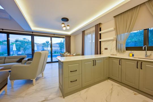 Fethiye'nin merkezinde, Hisarönü beldesinde konumlanan Villa Dorka, 8 kişiye kadar konaklama imkanı sunan, modern tasarımı ve zengin olanaklarıyla öne çıkan bir tatil villasıdır. Villa, 4 yatak odası ve 4 banyosu bulunan geniş bir alana sahiptir. Ferah salonu, modern mobilyaları ve tam donanımlı açık plan mutfağıyla konforlu bir yaşam alanı sunar. Ayrıca villada özel bir sauna bulunmaktadır, bu özelliklerle konuklar her an keyifli bir tatil geçirebilirler.