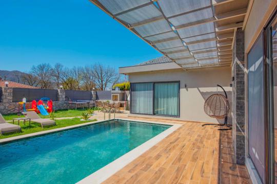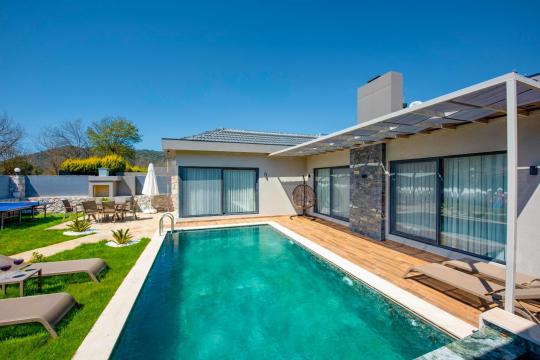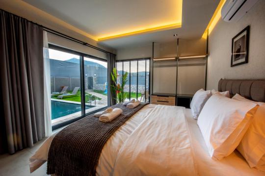Fethiye Kayaköy’ün huzur veren doğasında konumlanan Villa Fauna, modern mimarisi ve yüksek konfor standartlarıyla misafirlerine kaliteli bir tatil deneyimi sunuyor. 2 suit yatak odasıyla 4 kişilik konaklama kapasitesine sahip olan villamız, sade şıklığı ve elit tasarımıyla hem dinginlik hem de prestij arayanlar için özel olarak hazırlandı. Muhafazakar hassasiyetlere ve balayı çiftlerine tam uyum sağlayan villamız, dış dünyadan izole yapısıyla güvenli bir tatil imkanı sağlar. En ince ayrıntısına kadar düşünülmüş donanımı ve ferah yaşam alanlarıyla Villa Fauna, sevdiklerinizle baş başa kalıp huzur depolayacağınız, her anı özenle tasarlanmış seçkin bir kaçış noktasıdır.