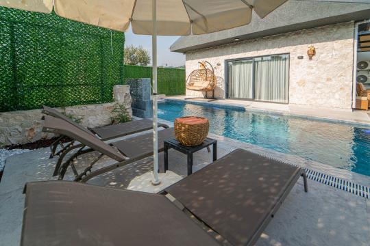Modern tasarımı ve özel havuzuyla dikkat çeken villa, korunaklı yapısı sayesinde muhafazakâr ailelerin de rahatlıkla konaklayabileceği bir ortam sunar. 2 yatak odasına sahip olan Villa Helena 2 , 4 kişiye kadar konaklama kapasitesiyle hem çiftler hem de küçük aileler için idealdir.