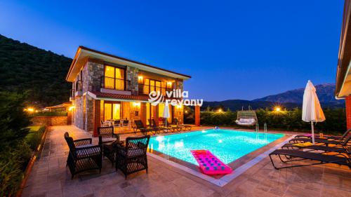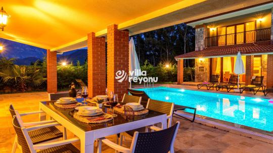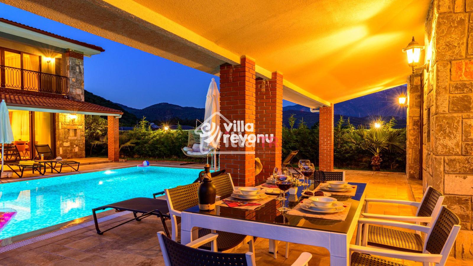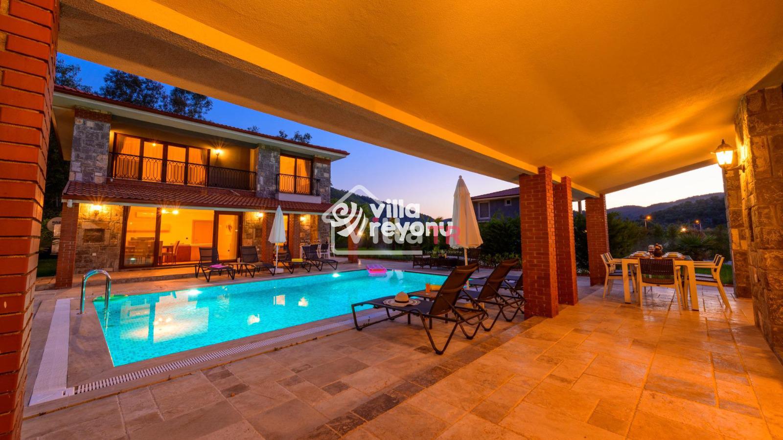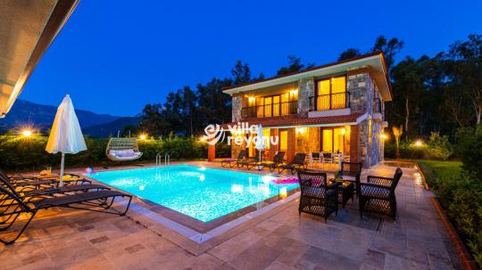 Villamız Fethiye'nin antik köylerinden Kayaköy mevkiinde yer almaktadır. Orman ve site içerisinde, çevresinde rahatsız edici seslerin bulunmadığı, gözlerinizin alabildiğine dağ ve doğa manzaralı bir konumdadır. Kayaköy Antik Kenti, Likya yolu yürüyüş parkurları, Gemiler adası, Darboğaz koyu gibi turistik alanlara yürüme mesafesinde yer almaktadır. Ölüdeniz Plajı ve Fethiye şehir merkezine 10 dakika yakınlıkta orta noktada yer almaktadır.