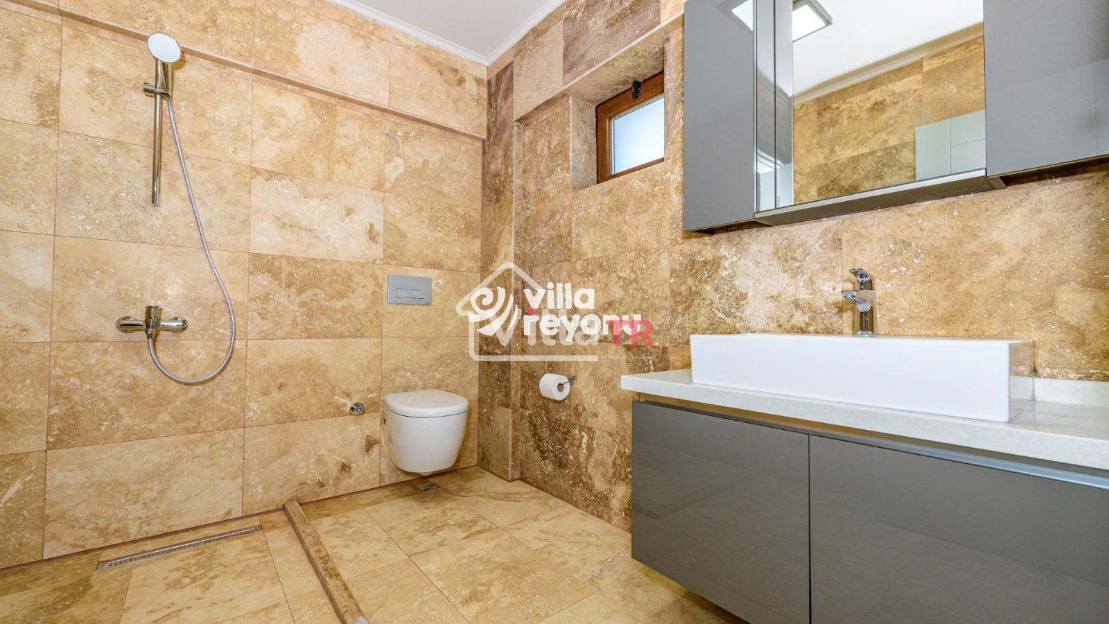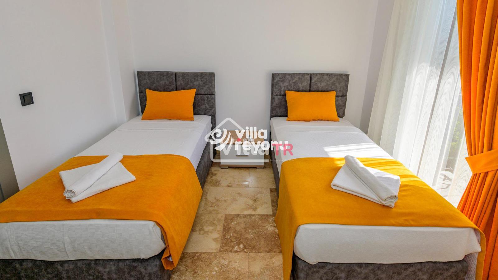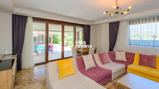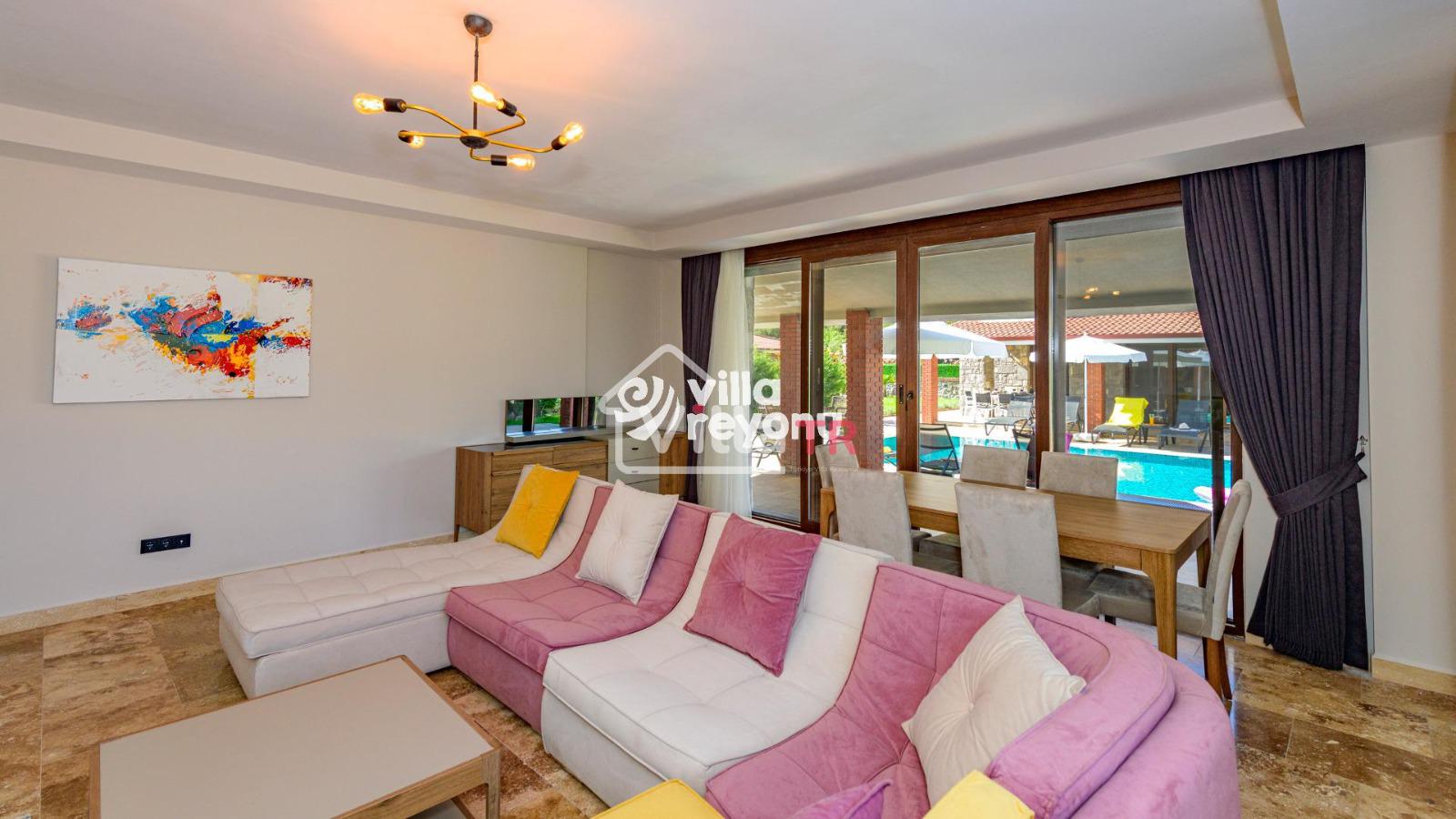 6 yatak odası, 6 banyo tuvalet bulunan villamız 12 kişilik konaklama kapasitesine sahiptir. 40 m2 büyüklüğünde özel havuzu, geniş yeşil alana sahip bahçesi, lüks bahçe takımları, salıncak, yemek masası ve güneşin tadını sessizliğin ve doğanın kalbinde tüm gün geçireceğiniz rahat şezlongları bulunmaktadır. Taş yapısı ile yazları serin, kışları serin olan villamız; lüks mobilyaları ve ferah iç dizaynı ile konforlu bir tatil için tasarlandı.