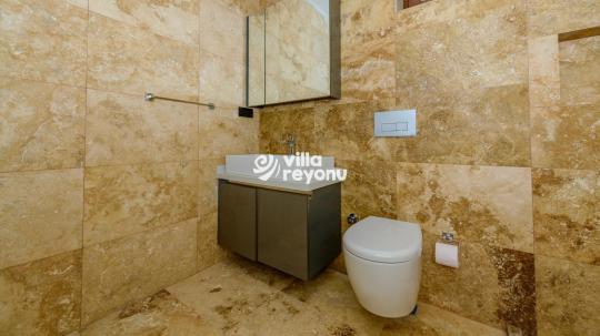 40 m² büyüklüğündeki özel yüzme havuzu tamamen korunaklıdır. Havuz alanı dışarıdan görünmez yapıdadır; bu da muhafazakâr tatil tercih eden aileler için büyük bir avantaj sağlar. Geniş bahçede yer alan rahat şezlonglar, konforlu oturma grupları, salıncak ve yemek masası, günün her saatini dış mekânda keyifle geçirmenizi sağlar.