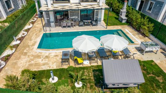 4 yatak odası ve 3 banyosuyla toplam 8 kişiye kadar konaklama imkanı sunan villada konfor ön planda tutulmuştur. Klimalar sayesinde her mevsim rahat bir konaklama deneyimi yaşayabilirsiniz.