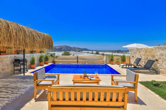 Villa Lamila Kalkan / Patara mevkisinde bulunmaktadır. Tek yatak odalı 2 kişilik konaklama kapasitesine sahiptir. Çekirdek aileler ve balayı çiftlerimiz için ideal bir seçenektir. Havuz ve havuz terası korunaklı olmasıyla muhafazakar çiftlerimiz için uygundur. Suit yatak odasında kişiye özel jakuzisi bulunmaktadır. Özel havuzu , geniş bahçe alanı, ve araç otopark yeri vardır. Villa Lamila' da güzel bir tatil geçirmeniz dileğiyle.