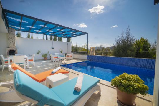 Villa Lili, Kalkan Üzümlü bölgesinde konumlanmış olan kiralık villamızdır. 2 yatak odası mevcut olup 4 kişiye kadar konaklama imkanı sağlamaktadır. Korunaklı yapısı sayesinde muhafazakar aileler ve balayı çiftleri için oldukça idealdir. Villamızda keyfini çıkarabileceğiniz saunamız bulunur. Hem yatak odasına hem de bahçe terasına açılan ısıtmalı kapalı havuzu vardır. Bu nedenle Villa Lili 12 ay boyunca hizmet vermektedir.