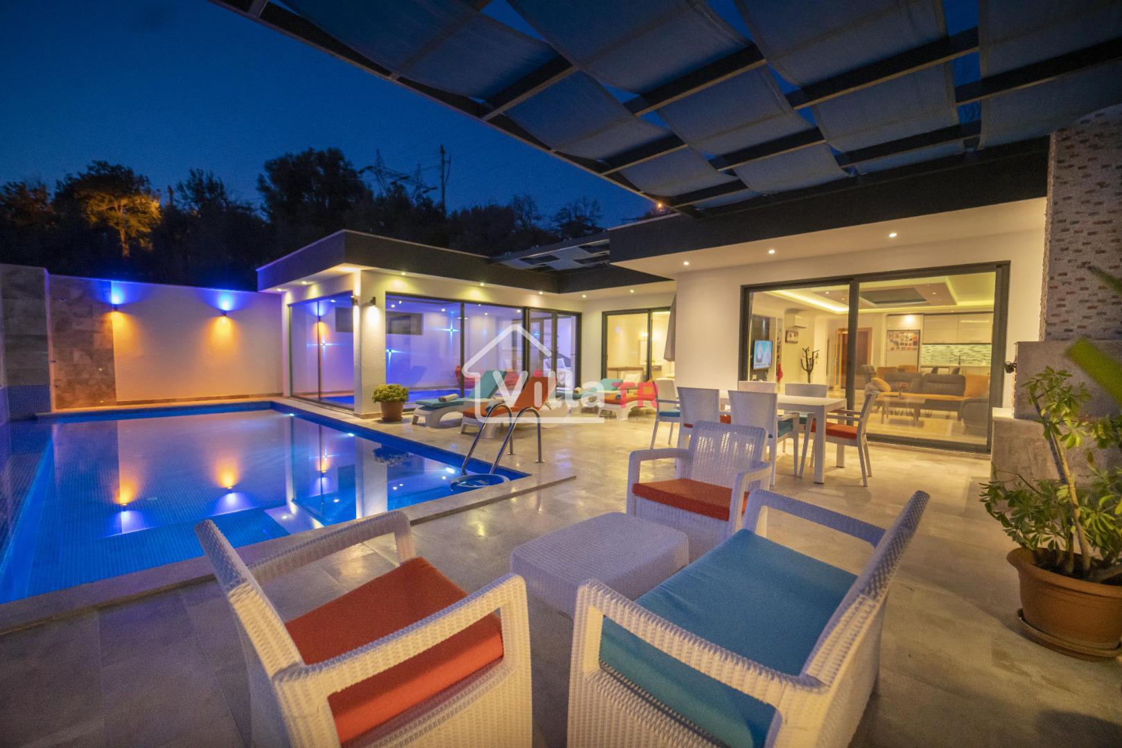 Not: Villamızda bulunan kapalı havuzun ısıtması 1 Ekim -1 Mayıs tarihleri arasında fiyata dahildir. Diğer tarihler için1 Mayıs-30 Eylül tarihleri arasında havuz ısıtması talep eden misafirlerimiz için ekstr günlük 1000 TL havuz ısıtması talep edilmektedir.