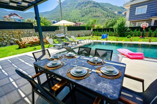 Hisarönü'nün kalbinde yer alan, lüks ve konforun mükemmel birleşimi Villa Luna Vista 3 , 4 yatak odası ve 4 banyosu ile 8 kişilik konaklama kapasitesine sahiptir. Geniş aileler için ideal olan bu villa, her detayı özenle düşünülerek tasarlanmıştır. Saunalı ve hamam konseptli duş ile kendinizi yenileyip rahatlatabilirsiniz. Modern ve şık mimarisiyle dikkat çeken bu büyüleyici villa, hem konumu hem de sunduğu olanaklarla misafirlerine eşsiz bir deneyim sunuyor. Geniş bahçesi, doğayla iç içe huzurlu anlar yaşamanız için mükemmeldir. Günün her anını keyifli kılacak bu alanlar, tatilinizi daha da unutulmaz hale getirecek.Hisarönü merkeze yakın konumuyla, restoranlar, alışveriş merkezleri ve eğlence mekanlarına kolayca ulaşabilirsiniz. Aynı zamanda sessiz ve sakin bir ortam sunarak, doğanın tadını çıkarabileceğiniz huzurlu bir konaklama imkanı sağlar.