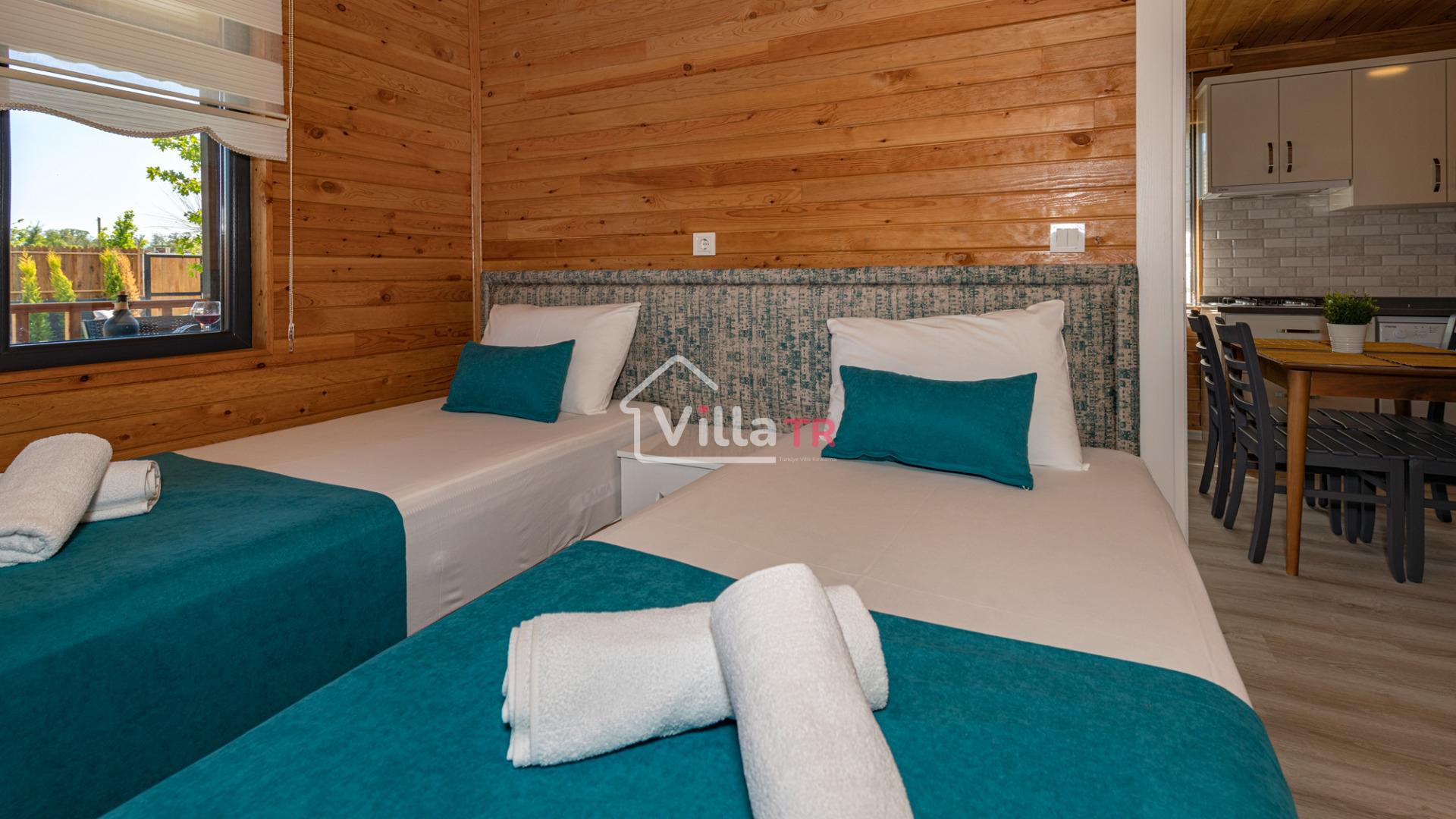 2 yatak odalı, 1 tuvalet banyolu villamız 4 kişilik konaklama imkanına sahiptir. Korunaklı geniş ve yeşil bir bahçe, 32 m2 büyüklüğünde geniş geniş özel odası, bahçe ekipleri, yemek masası, güneşli, konforlu dinlenmeleri ve bitkiselsüyle balayı çiftlerimiz ve çekirdek ailelerimiz için tasarlandı.