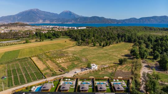 Villa Olenna 4, Fethiye'nin el değmemiş özellikleri ve her yere yakın olmasına rağmen turizm yoğunluğunun bulunmadığı nadir yerlerinden Yanıklar Mevkiinde bulunmaktadır. Bungolow tasarımını villa konforu ile harmanlamış, yemyeşil doğasında bir inziva ve izole bir tatil deneyimi sunmaktadır. Denize yürüme mesafesindeki villamız Fethiye şehir merkezi, Dünyaca ünlü caretta carettalara ev sahipliği yapan Çalış Plajı, Kordon, restoran ve mekanlara araç veya toplu taşıma ile 10-15 dakika mesafededir.