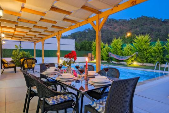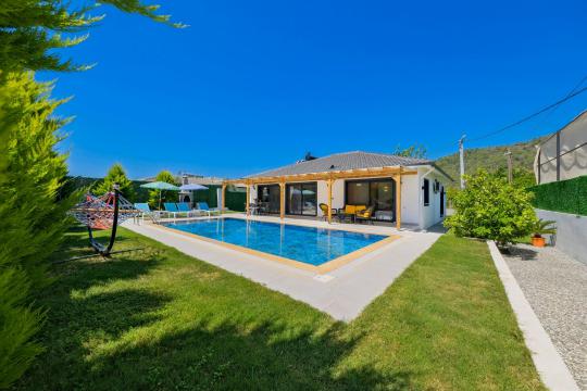 * Doğa içerisinde bulunan tüm villalarımızda düzenli olarak ilaçlama yapılmaktadır. Ancak yine de çevrede kelebek, böcek, sinek vb. bulunma ihtimali bulunmaktadır.