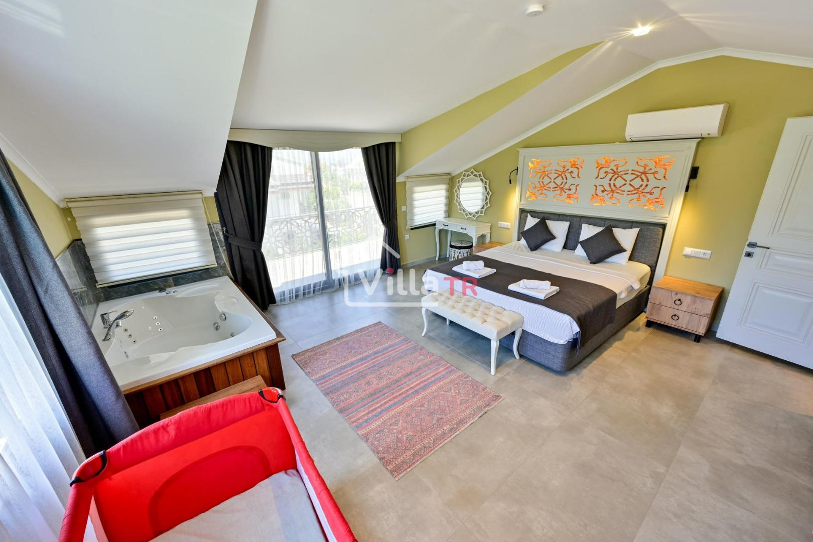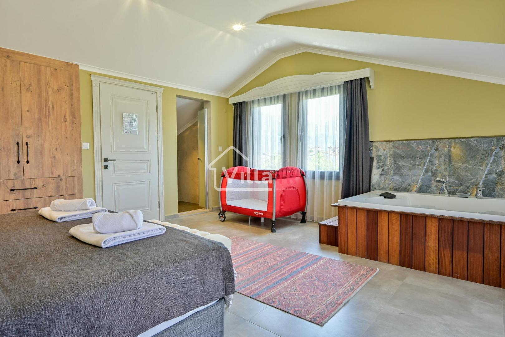 Villamızda 4 yatak odası, 3 odada banyo ve tuvalet, jakuzi, açık mutfak salon, her odada klimaları yer almaktadır. Havuz basında ise şezlong şemsiye, bahçe oturma grubu, çift kişilik salıncak, 6 kişilik masa sandalye takımı ve barbeküsü yer almaktadır.