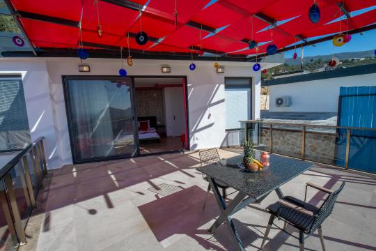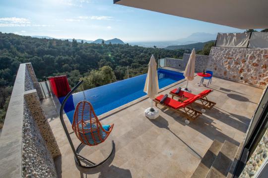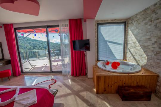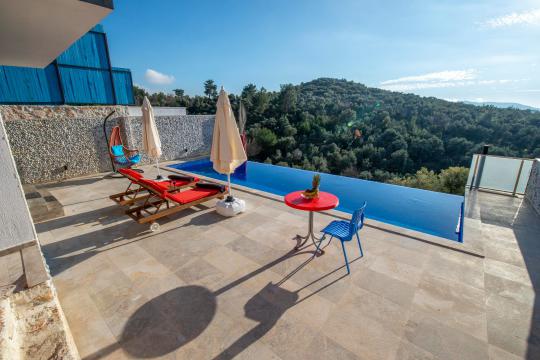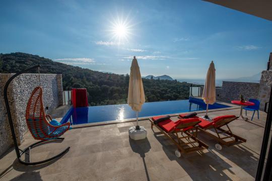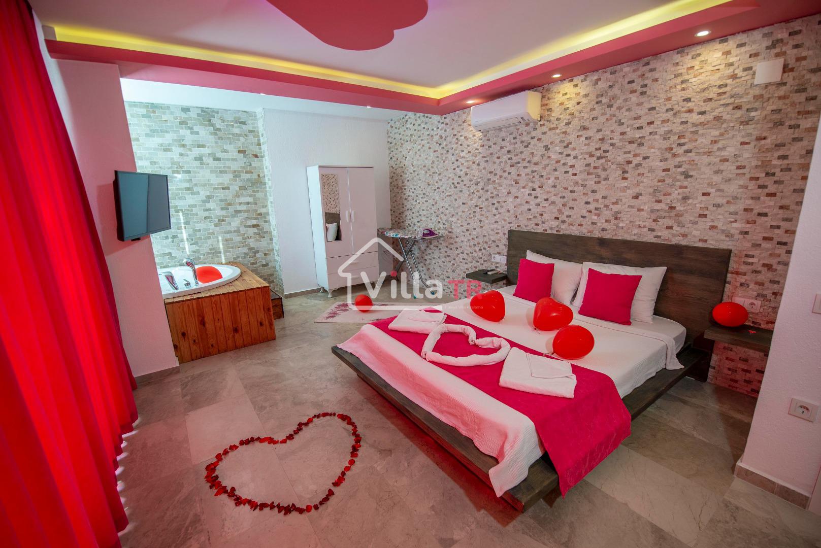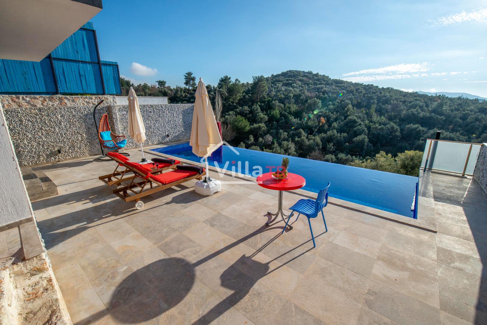 Villamız Antalya Kaş/Kalkan’da Üzümlü mevkiinde yer almaktadır. Size doğayla baş başa bir tatil imkanı sunan, etrafı ormanlarla çevrili ve tertemiz havasıyla cazibe merkezi haline gelmiş Üzümlü köyünün en güzel manzaralarından birine konumlandırılmıştır. Dilediğinizde evinizden çıkıp 10 dakika içerisinde popüler turistik alanlara trafiğe takılmadan ulaşabilmeniz bakımından oldukça avantajlı bir balayı villasıdır.1 yatak odası, 1 banyo tuvalet bulunan villamız 2 kişilik konaklama kapasitesine sahiptir. 28 m2 tam korunaklı özel havuzu, şirin bir bahçesi, bahçesinde yemek masası, oturma takımı, salıncak ve barbeküsü bulunmaktadır. Yatak odası üst katta olan villamız, jakuzi ve yatak odasından çıkılabilen manzaralı bir terasa sahiptir. Şık dış mimarisi ve modern iç tasarımıyla balayı çiftlerimizin en özel anlarını unutulmaz kılmak için tasarlandı.