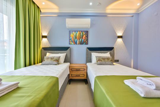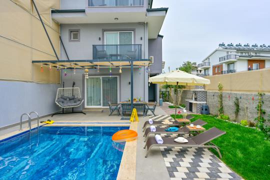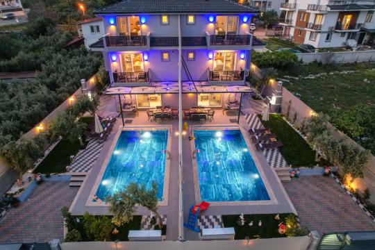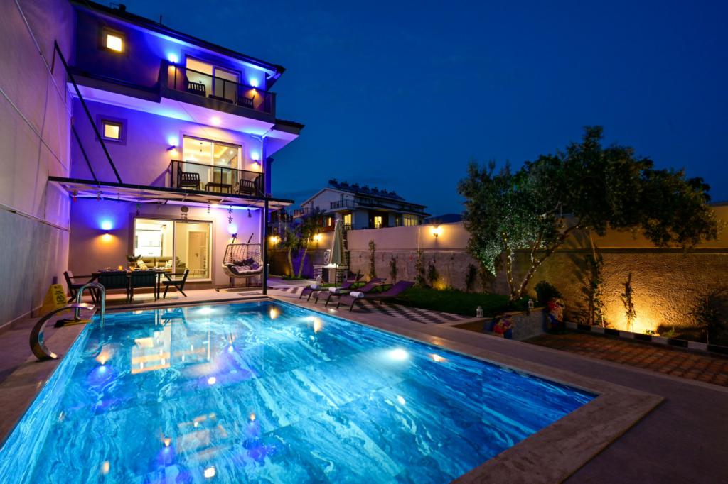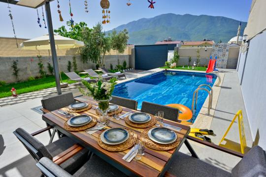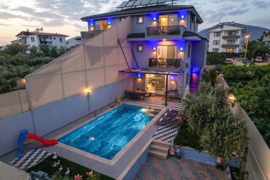 Fethiye - Karaçulha mahallesinde yer alan Villa Venüs 1, 4 yatak odası ve 8 kişilik konaklama kapasitesine sahiptir. Geniş konaklama kapasitesinin yanı sıra yan yana ikiz villası kalabalık aile grupları için harika bir tercih olan villamız merkeze yakın konumuyla da avantaj sağlamaktadır. Şık tasarımı ve ferah yapısı, villa tatili yapmak isteyen siz değerli misafirlerimiz için özenle hazırlanmıştır.