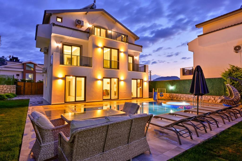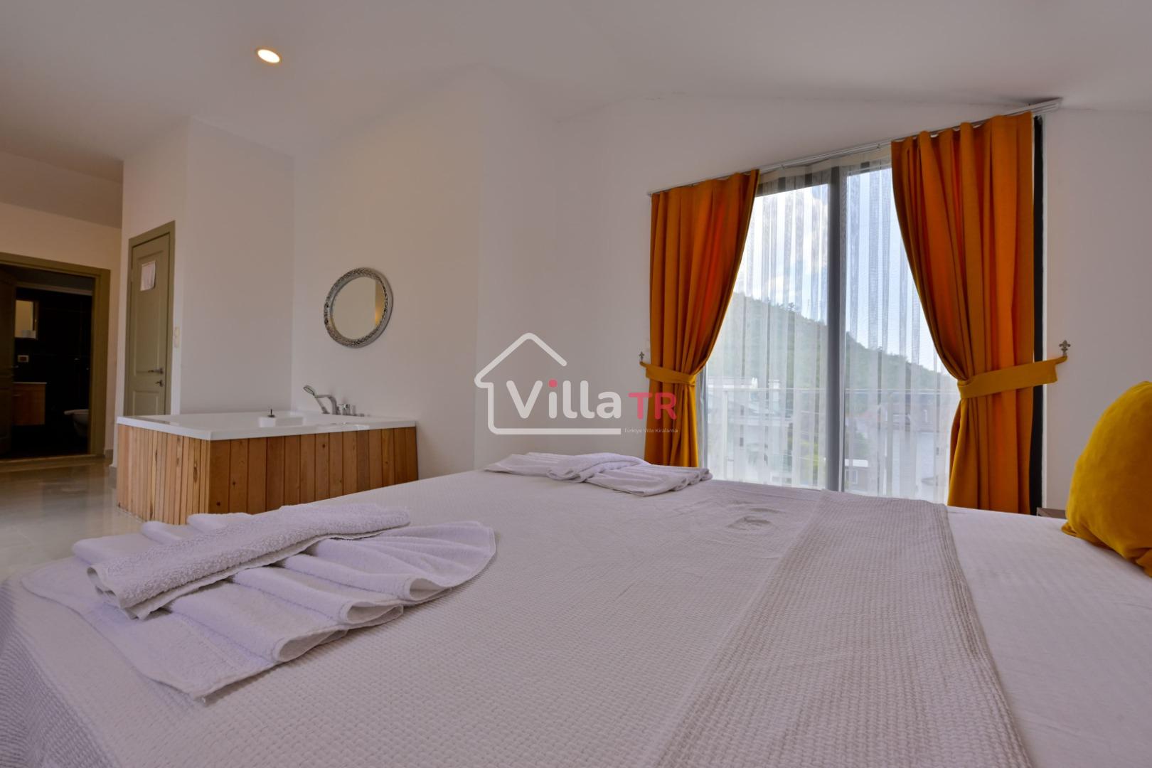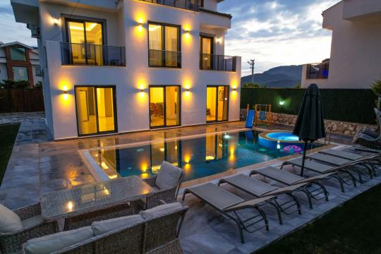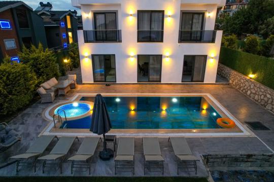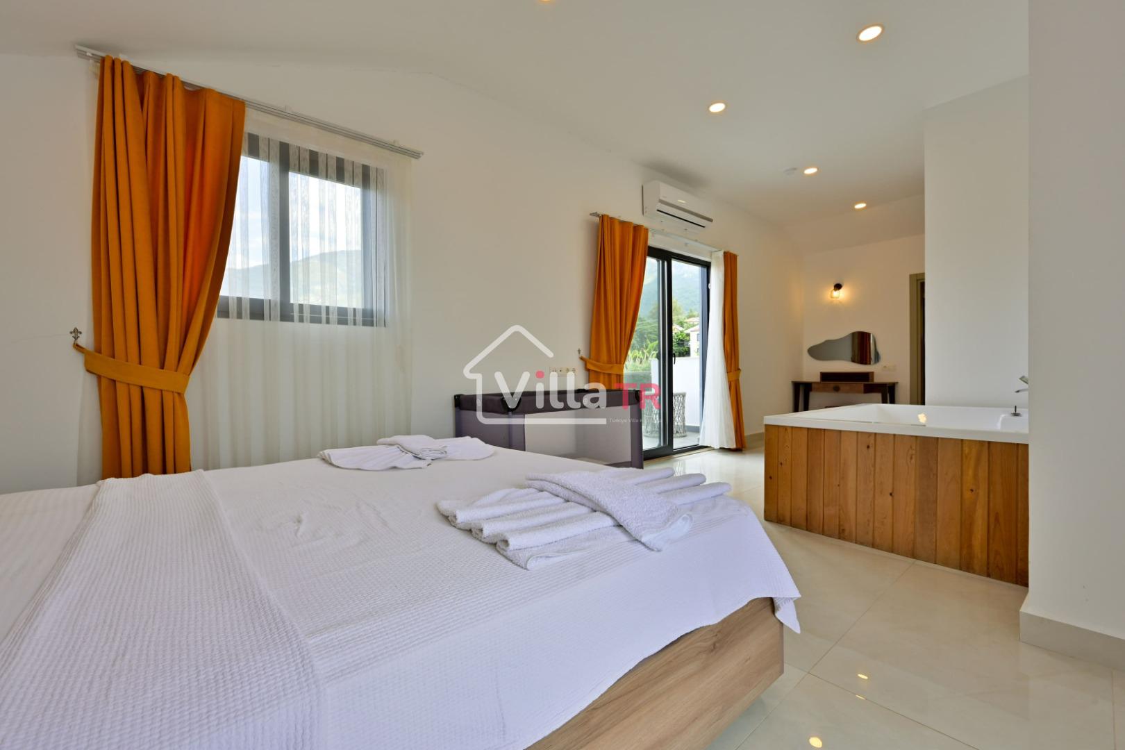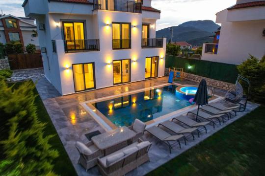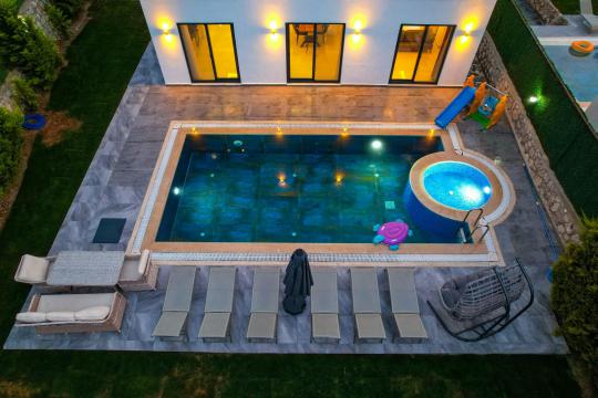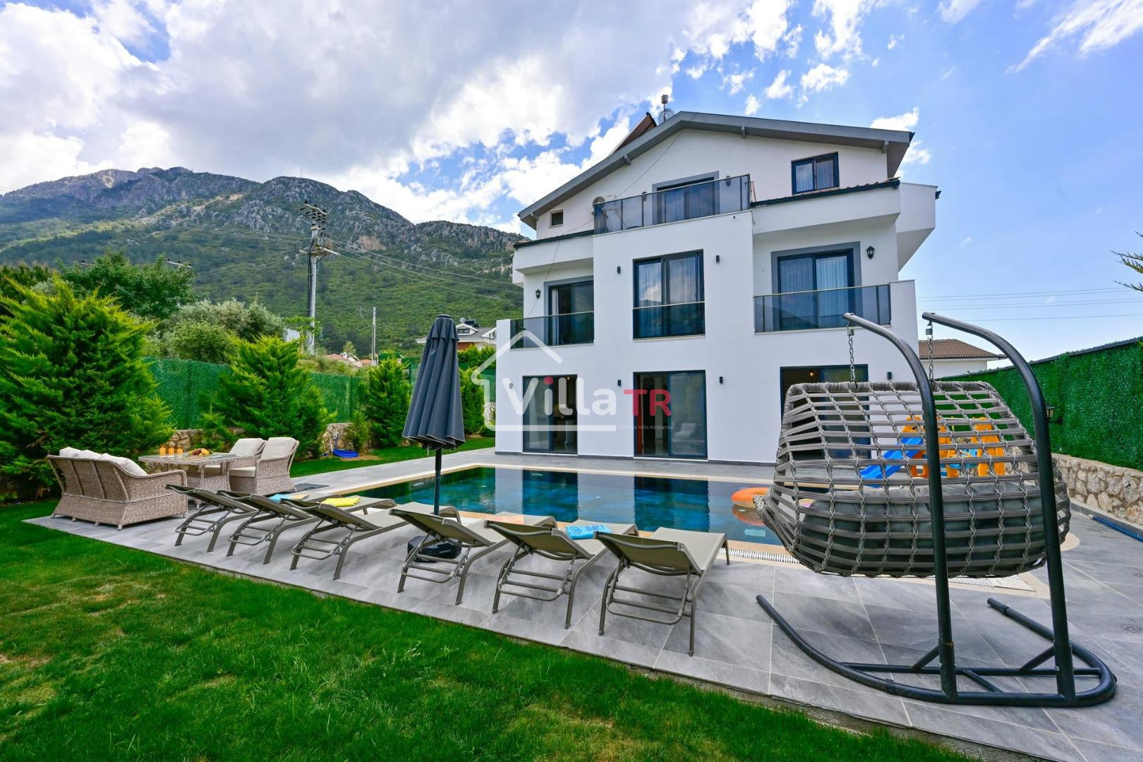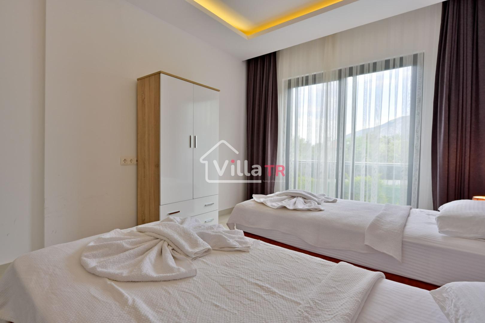 4 yatak odası, 4 banyo tuvalet bulunan villamız 8 kişilik konaklama kapasitesine sahiptir. Geniş bahçesi, 40 m2 büyüklüğünde özel havuzu, bahçe mobilyaları ve barbeküsü bulunmaktadır. Ebeveyn odasında jakuzisi bulunan villamız, Babadağ eteklerinde ki konumu sebebiyle ormanların bol oksijenli esintilerinin bahçenizden eksik olmadığı, şık ve kullanışlı dizaynı ile kendinizde evinizde hissedeceğiniz bir tatil için tasarlandı. Geniş ve kalabalık ailelerimiz için idealdir
