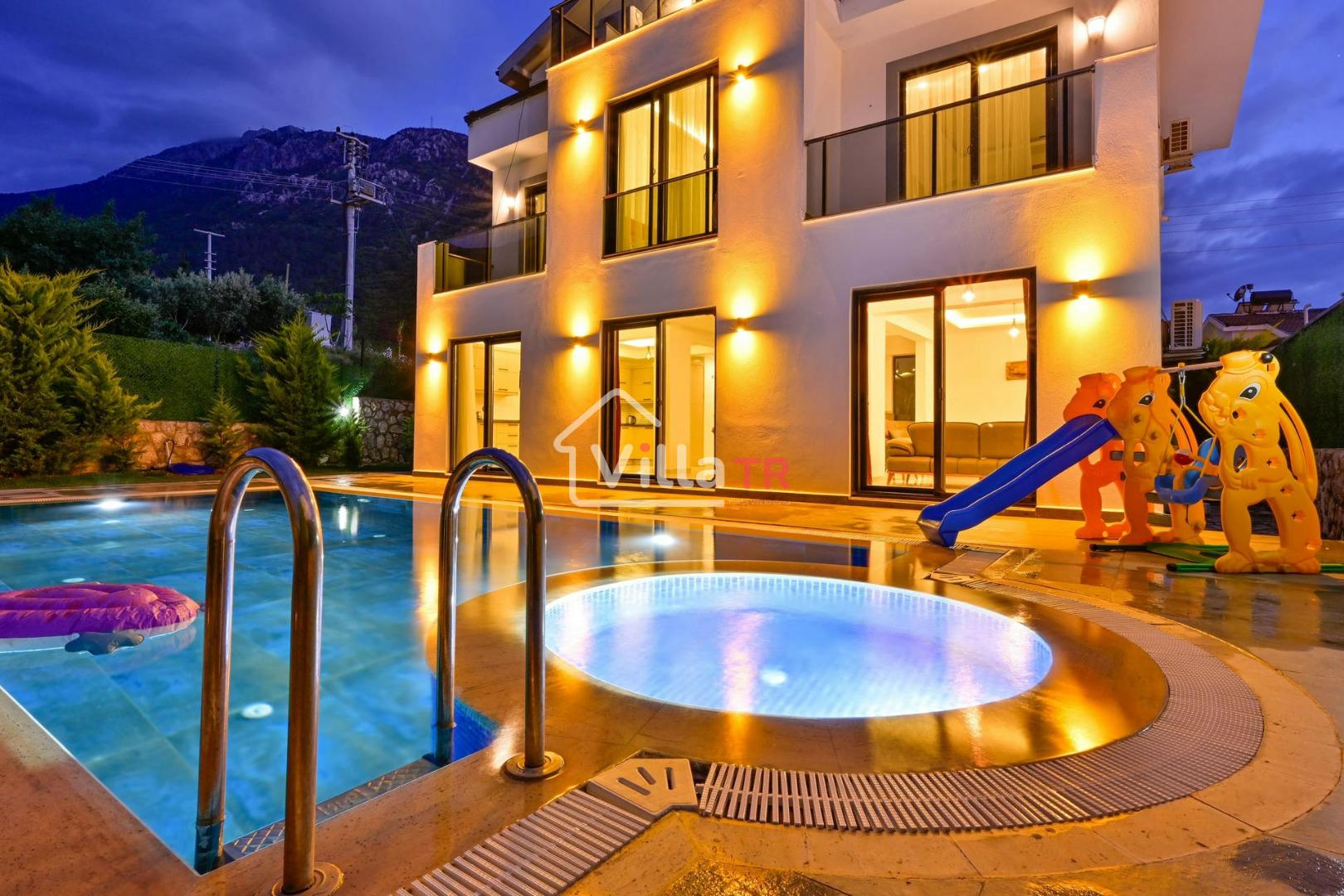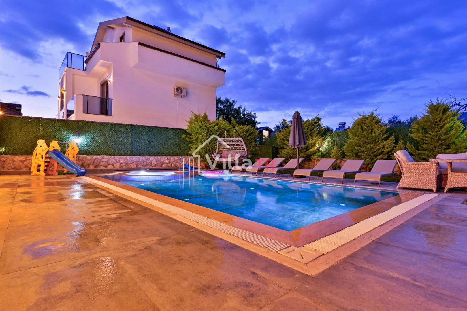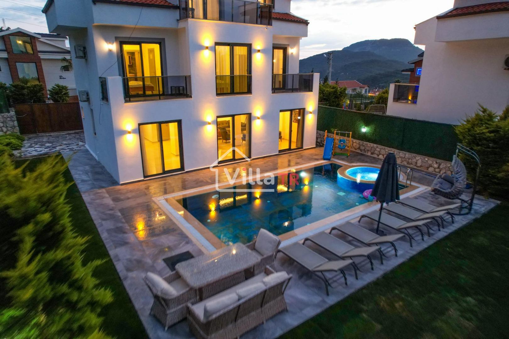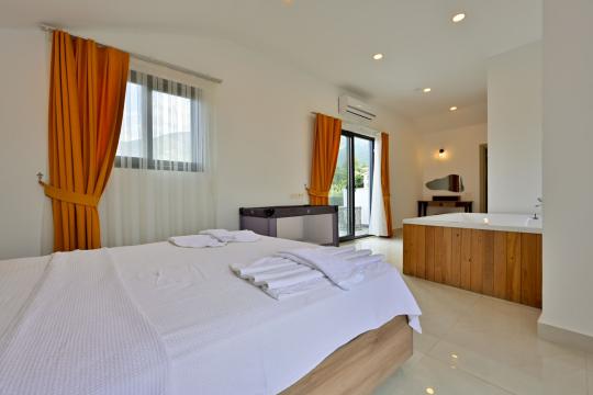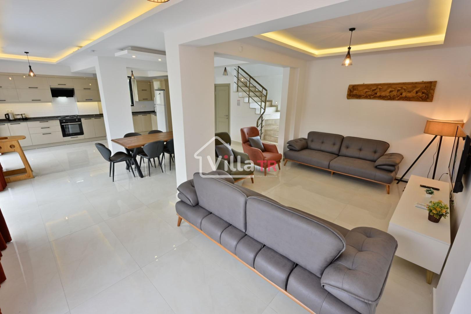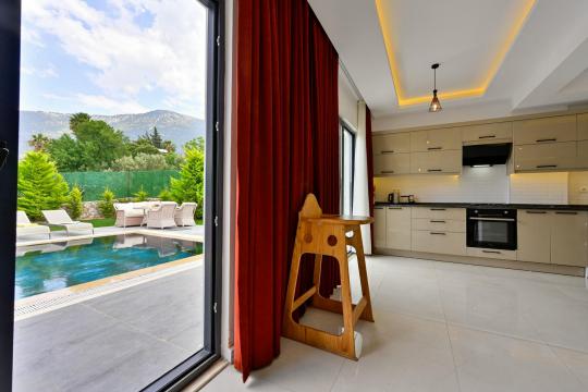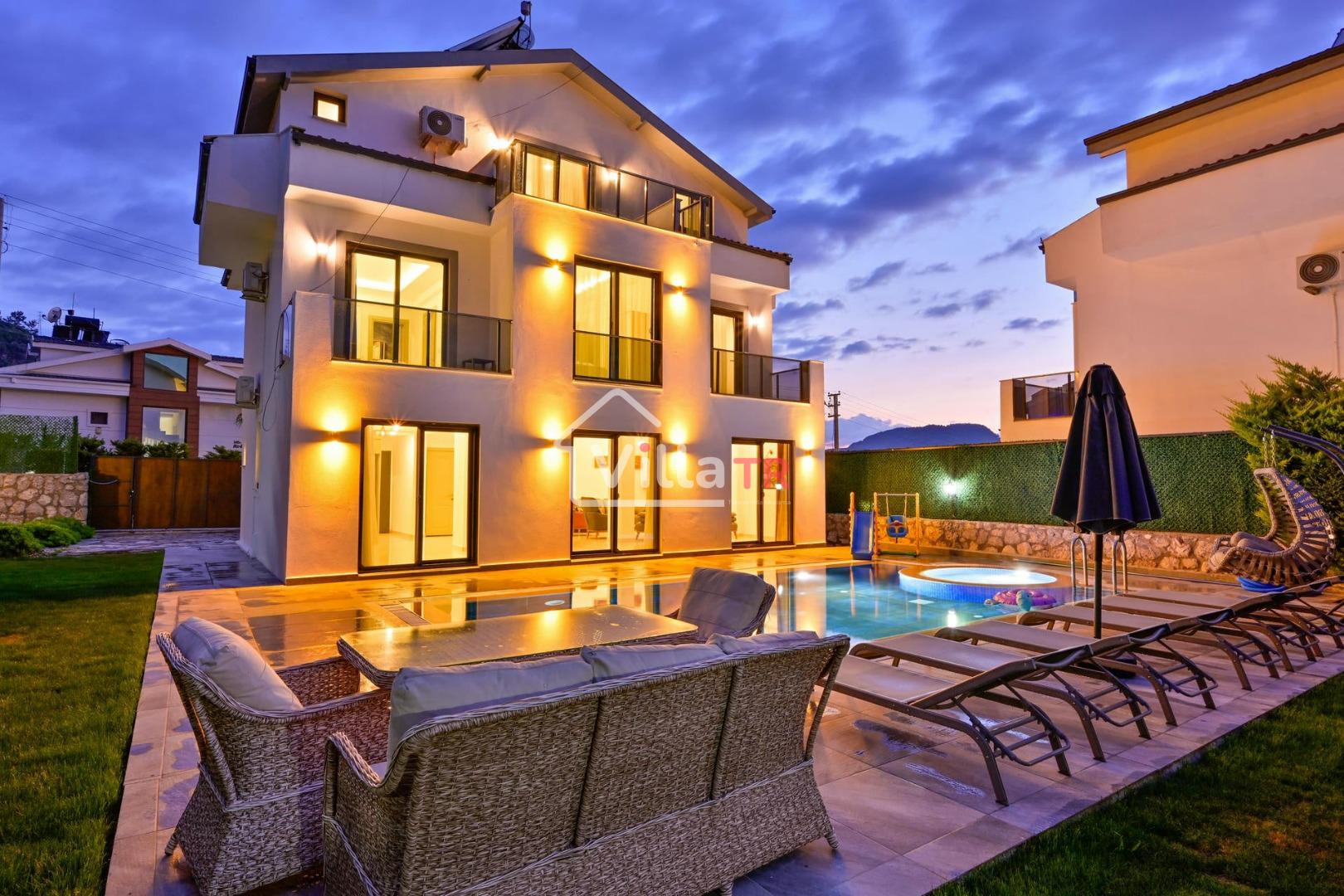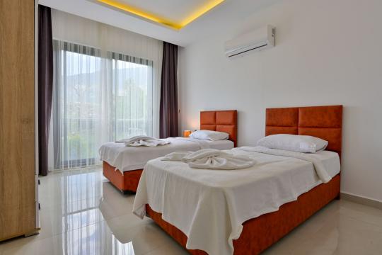 4 yatak odası, 4 banyo tuvalet bulunan villamız 8 kişilik konaklama kapasitesine sahiptir. Geniş bahçesi, 40 m2 büyüklüğünde özel havuzu, bahçe mobilyaları ve barbeküsü bulunmaktadır. Ebeveyn odasında jakuzisi bulunan villamız, Babadağ eteklerinde ki konumu sebebiyle ormanların bol oksijenli esintilerinin bahçenizden eksik olmadığı, şık ve kullanışlı dizaynı ile kendinizde evinizde hissedeceğiniz bir tatil için tasarlandı. Geniş ve kalabalık ailelerimiz için idealdir