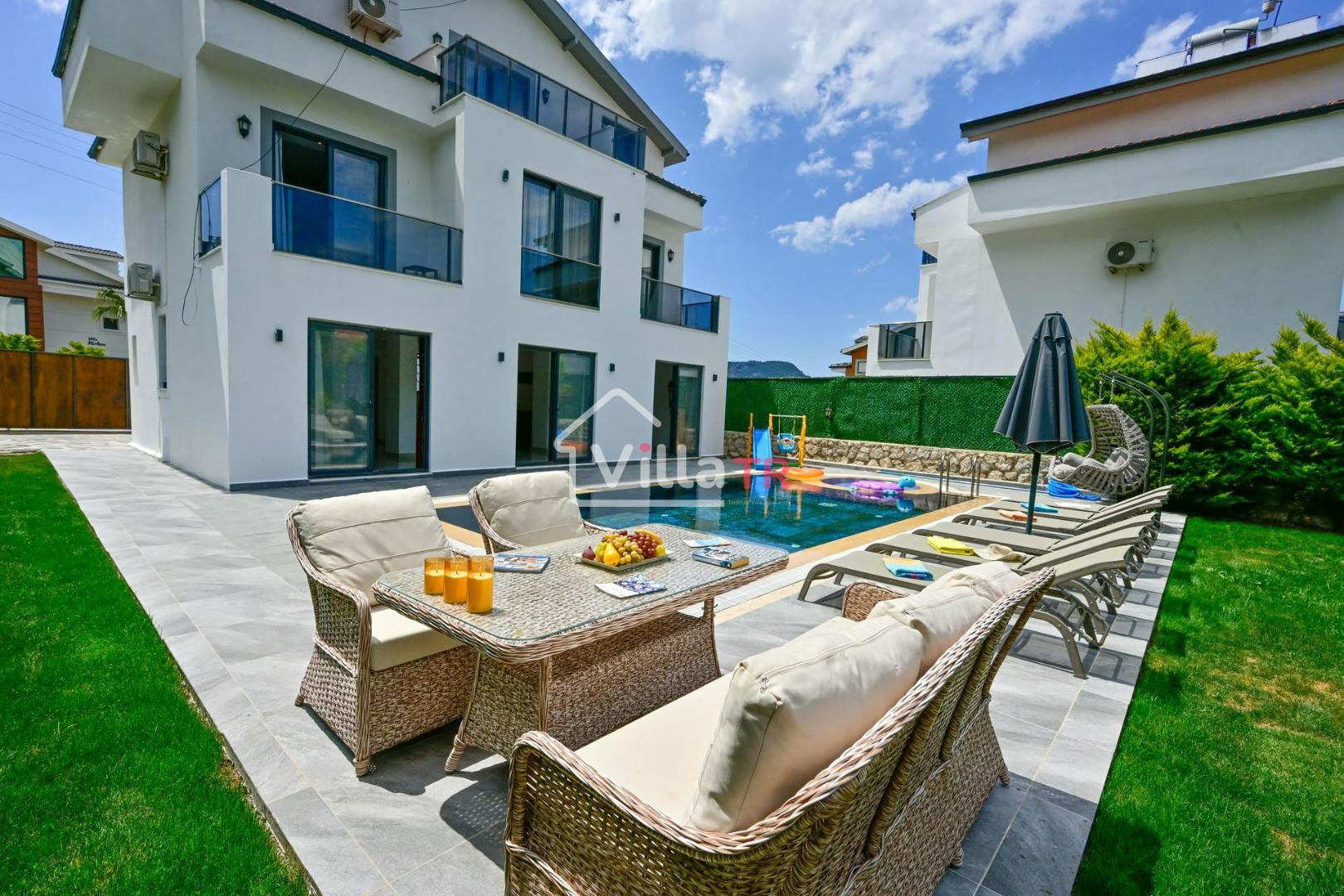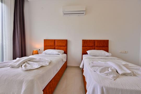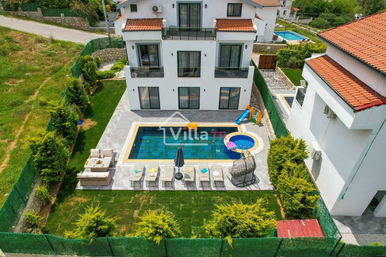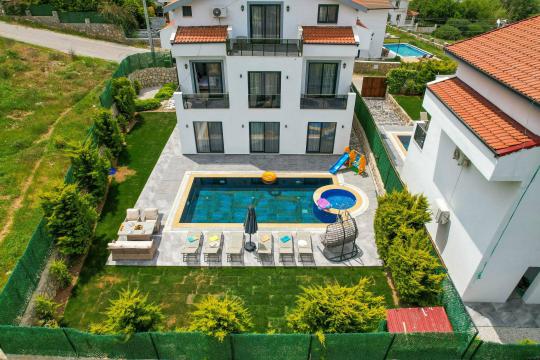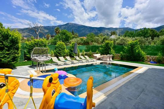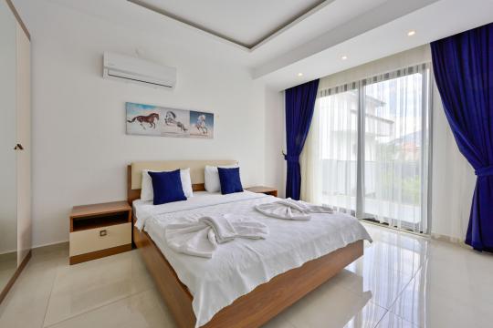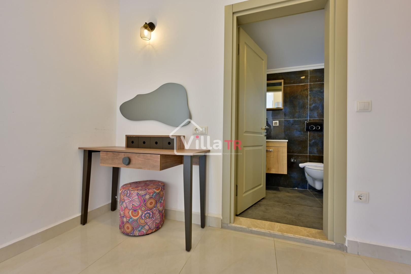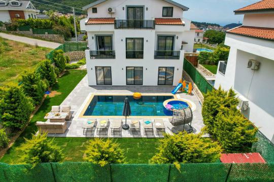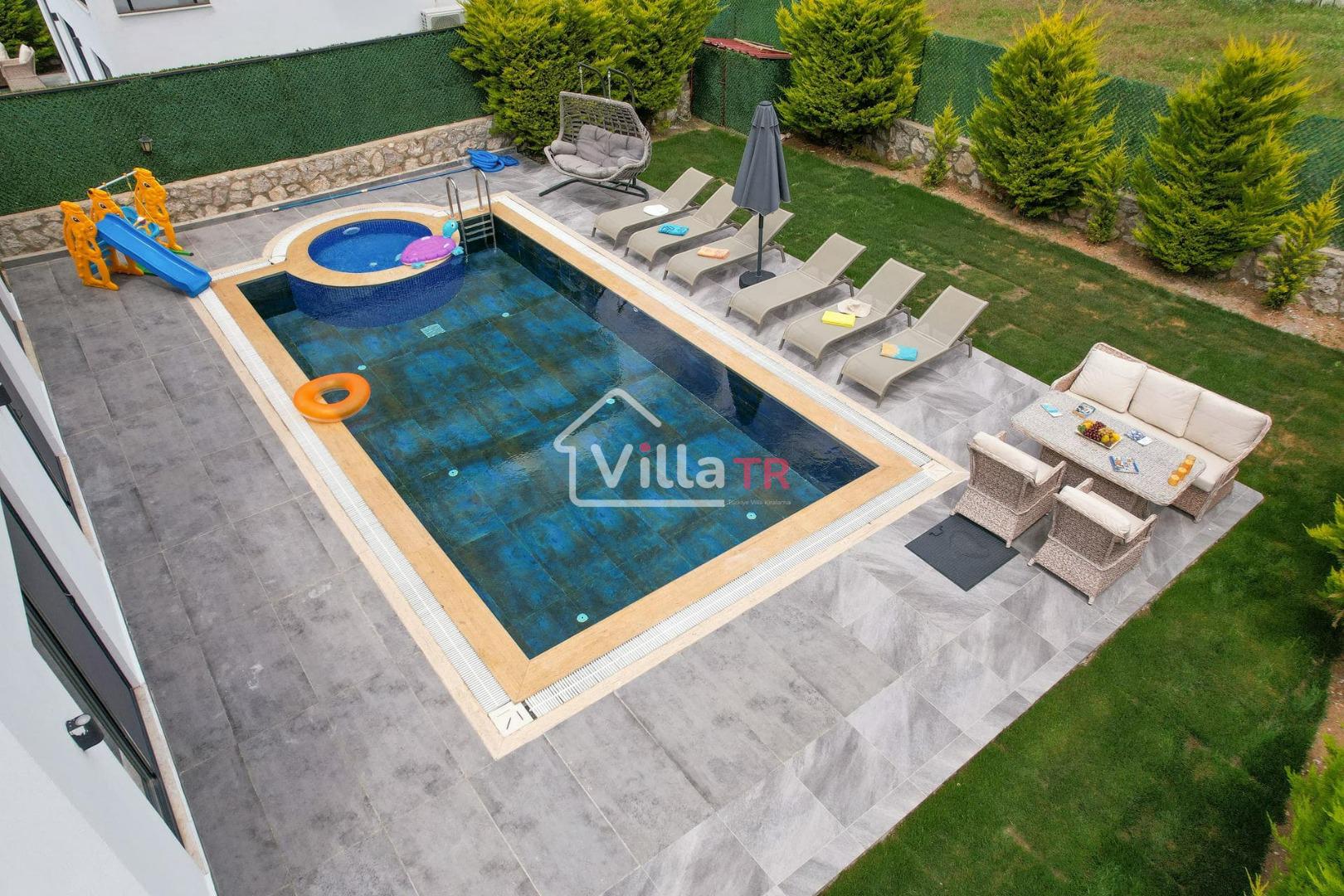 4 yatak odası, 4 banyo tuvalet bulunan villamız 8 kişilik konaklama kapasitesine sahiptir. Geniş bahçesi, 40 m2 büyüklüğünde özel havuzu, bahçe mobilyaları ve barbeküsü bulunmaktadır. Ebeveyn odasında jakuzisi bulunan villamız, Babadağ eteklerinde ki konumu sebebiyle ormanların bol oksijenli esintilerinin bahçenizden eksik olmadığı, şık ve kullanışlı dizaynı ile kendinizde evinizde hissedeceğiniz bir tatil için tasarlandı. Geniş ve kalabalık ailelerimiz için idealdir