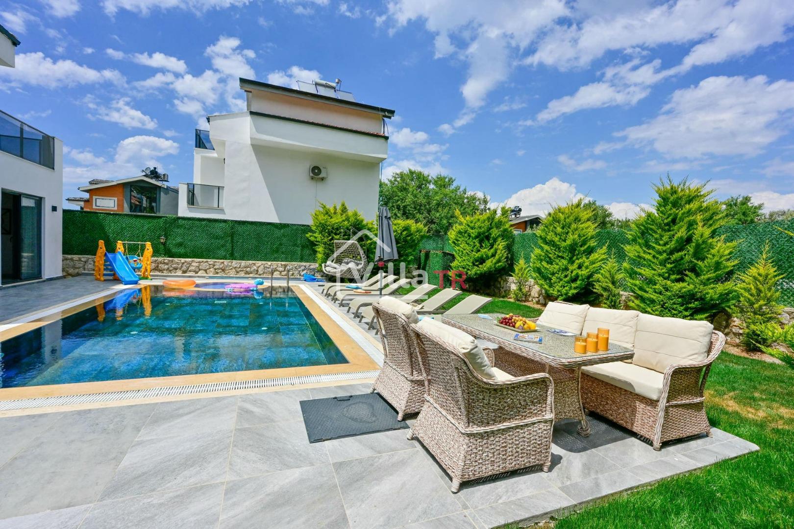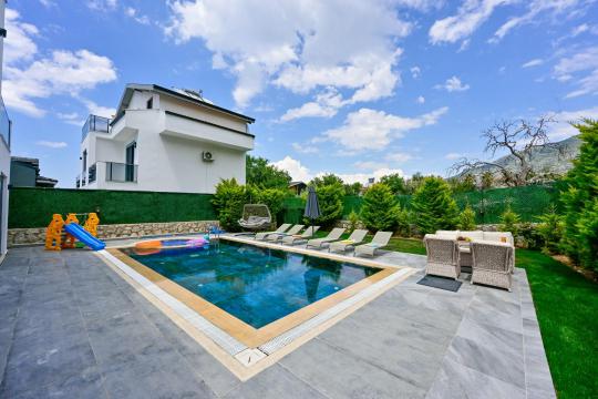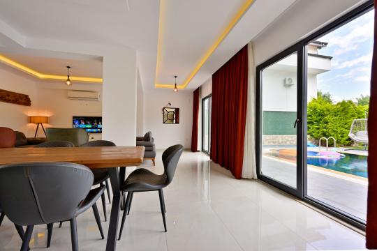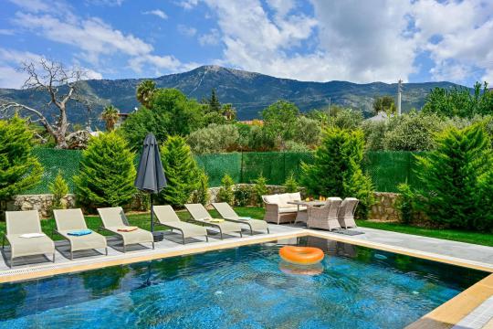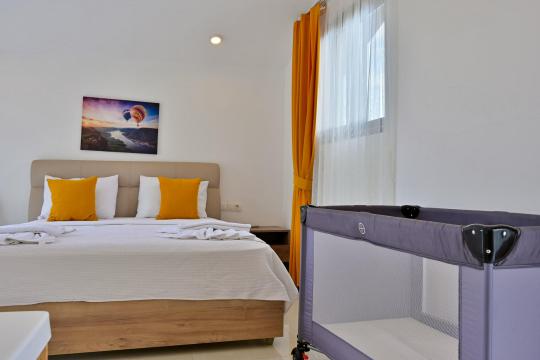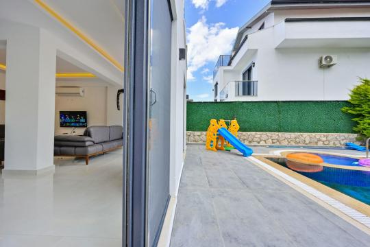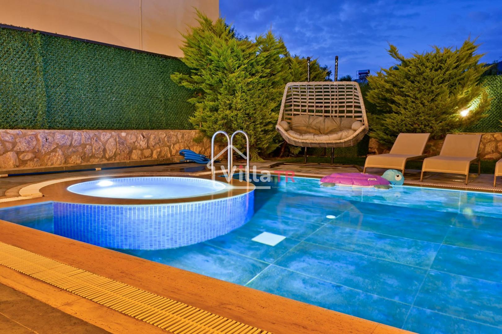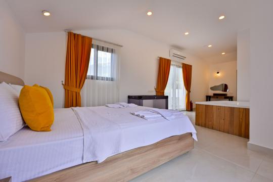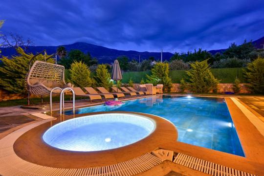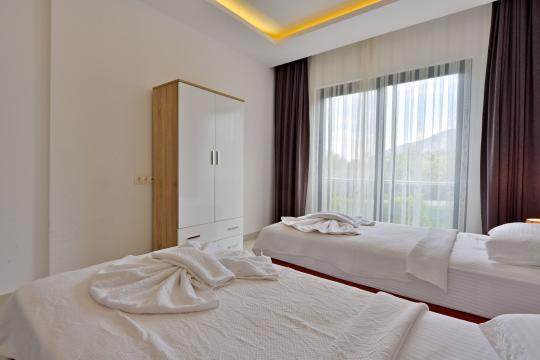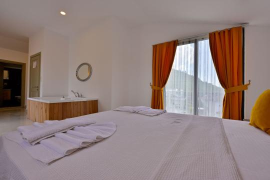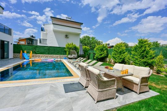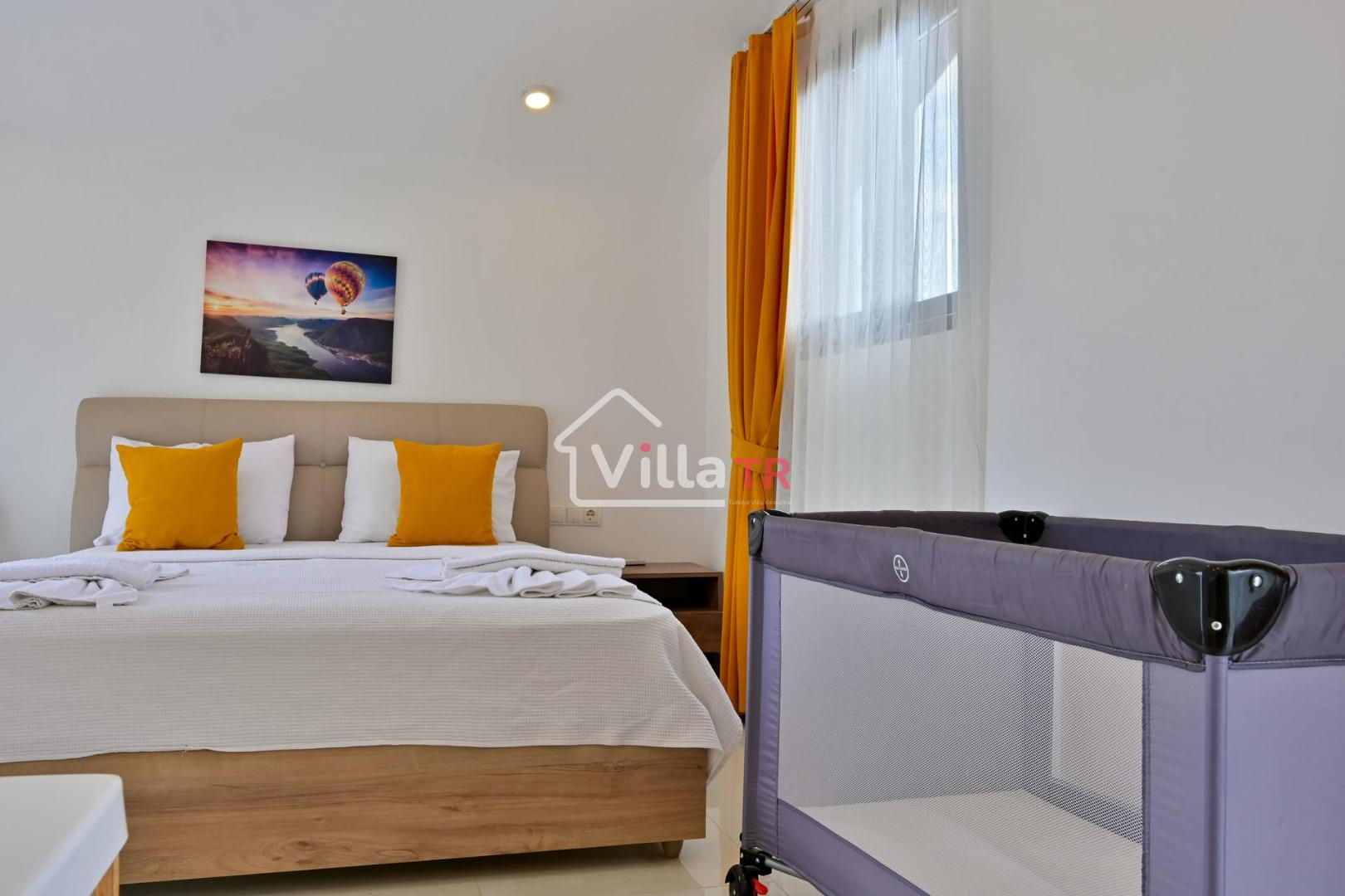 4 yatak odası, 4 banyo tuvalet bulunan villamız 8 kişilik konaklama kapasitesine sahiptir. Geniş bahçesi, 40 m2 büyüklüğünde özel havuzu, bahçe mobilyaları ve barbeküsü bulunmaktadır. Ebeveyn odasında jakuzisi bulunan villamız, Babadağ eteklerinde ki konumu sebebiyle ormanların bol oksijenli esintilerinin bahçenizden eksik olmadığı, şık ve kullanışlı dizaynı ile kendinizde evinizde hissedeceğiniz bir tatil için tasarlandı. Geniş ve kalabalık ailelerimiz için idealdir
