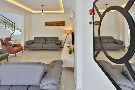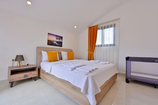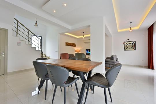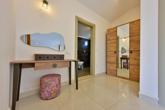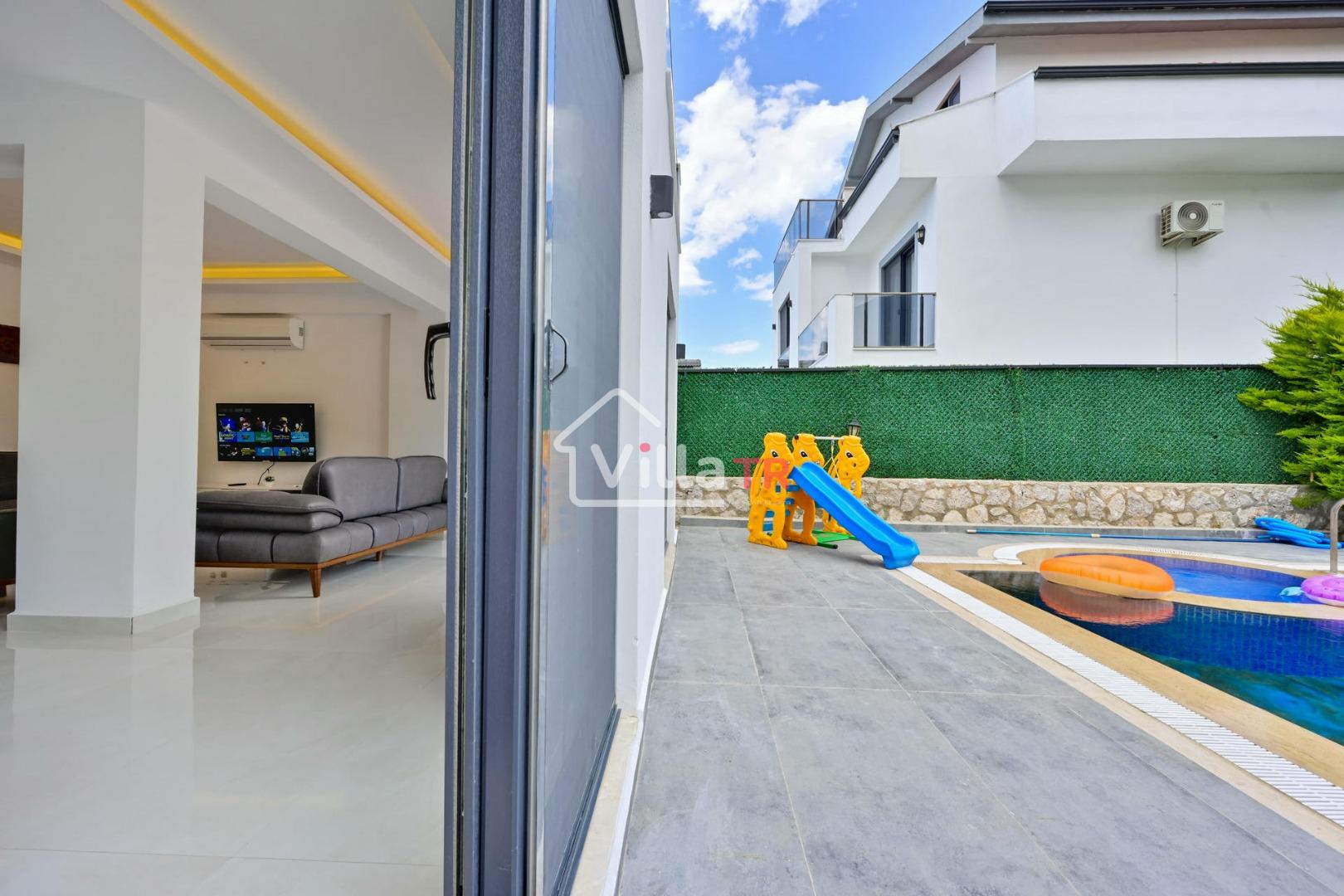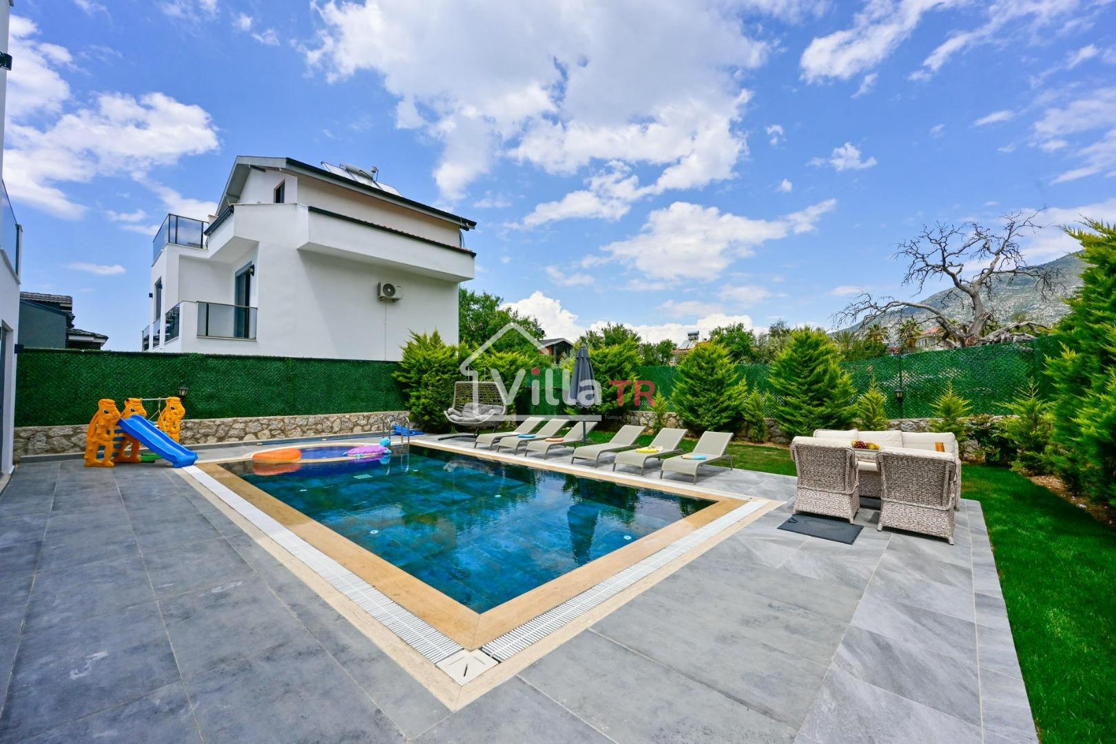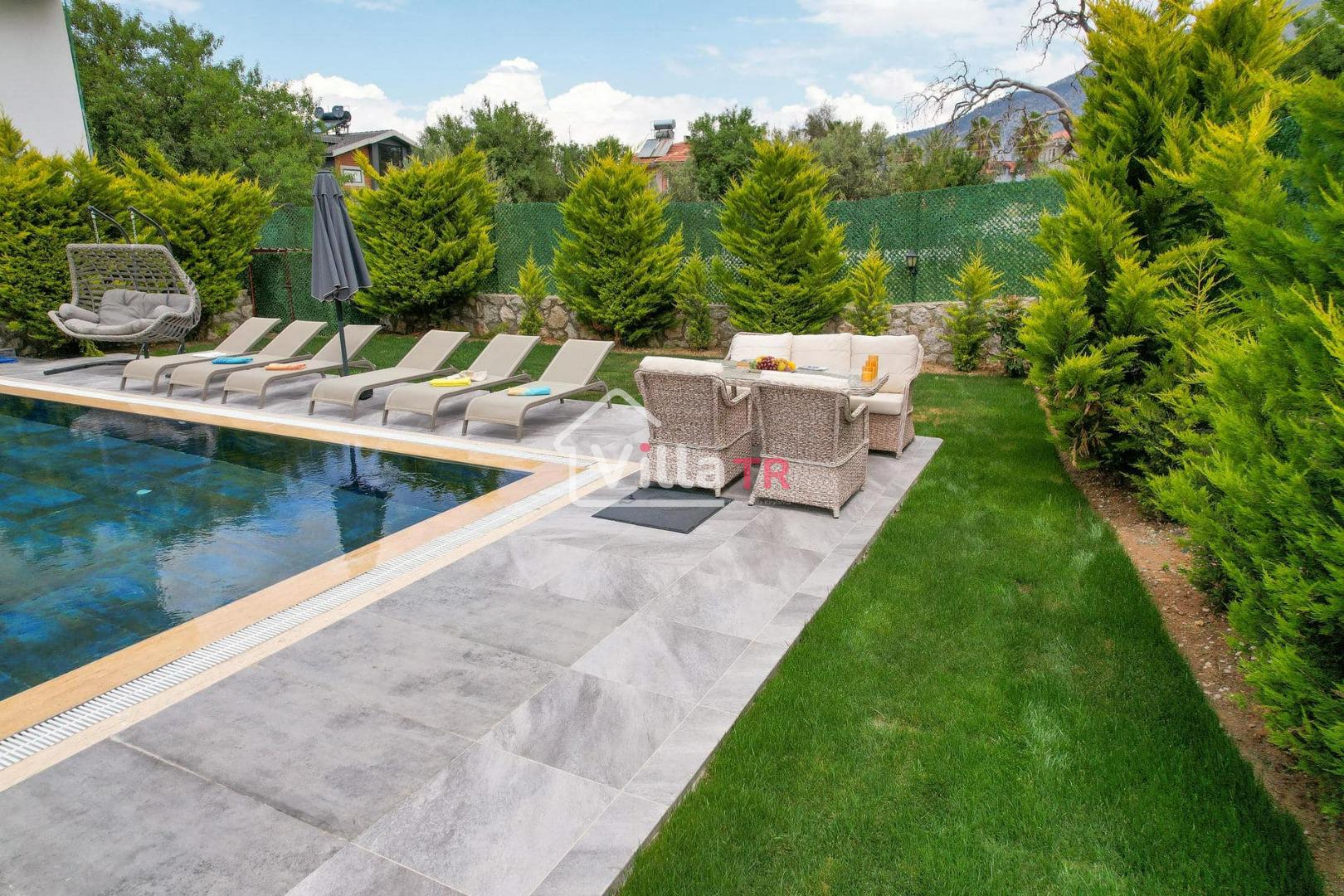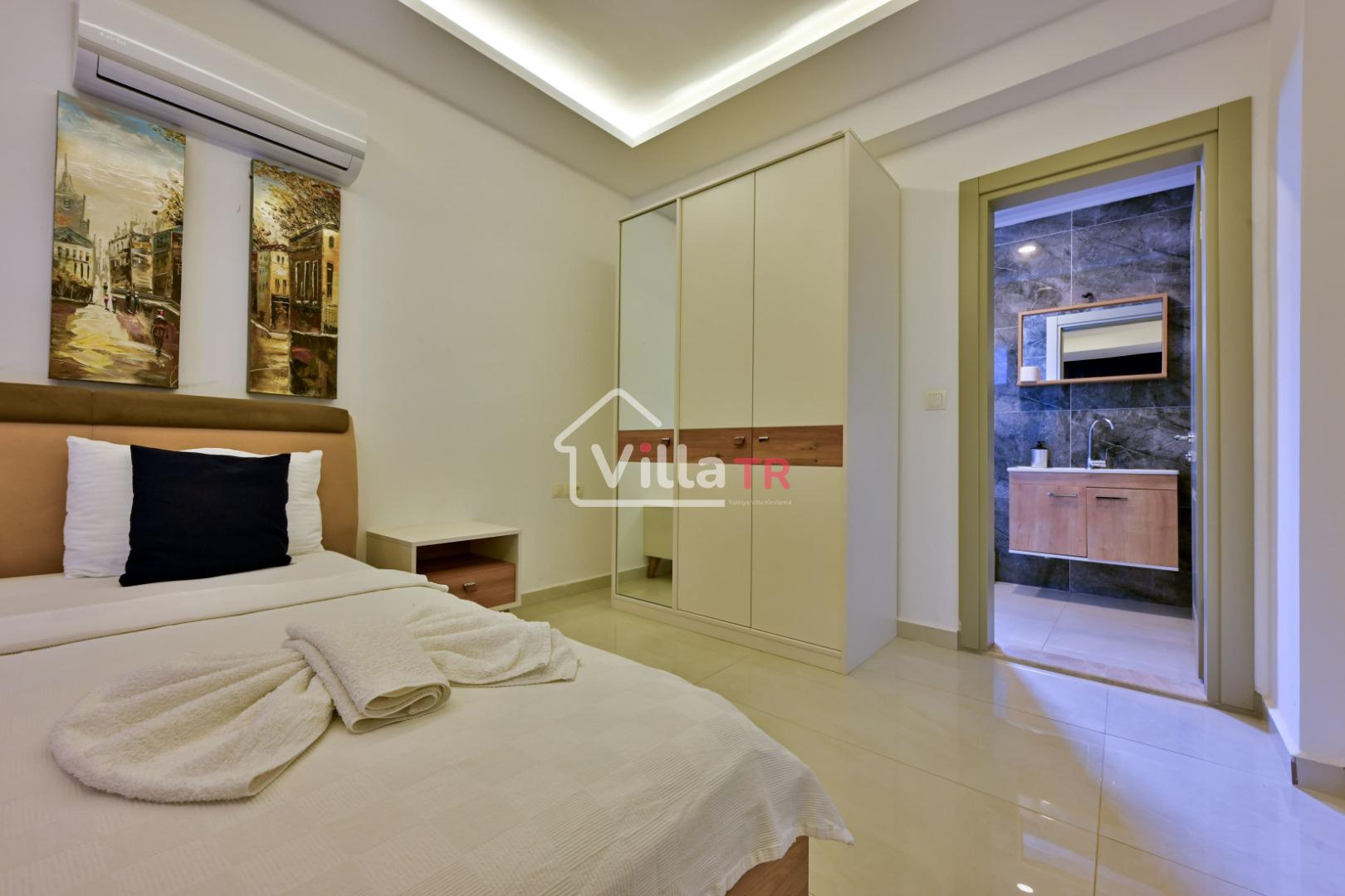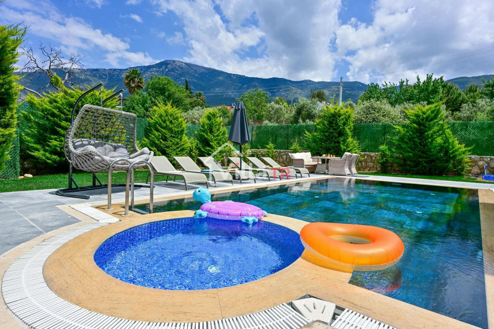 4 yatak odası, 4 banyo tuvalet bulunan villamız 8 kişilik konaklama kapasitesine sahiptir. Geniş bahçesi, 40 m2 büyüklüğünde özel havuzu, bahçe mobilyaları ve barbeküsü bulunmaktadır. Ebeveyn odasında jakuzisi bulunan villamız, Babadağ eteklerinde ki konumu sebebiyle ormanların bol oksijenli esintilerinin bahçenizden eksik olmadığı, şık ve kullanışlı dizaynı ile kendinizde evinizde hissedeceğiniz bir tatil için tasarlandı. Geniş ve kalabalık ailelerimiz için idealdir