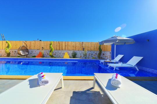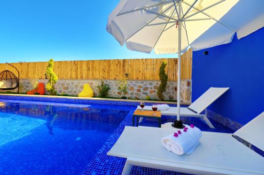 Villa Zeytun, Antalya’nın Kaş/Kalkan Çayköy mevkiinde yer alıyor. Masmavi ve berrak deniziyle bilinen Kalkan semti, dinlenmek ve ferahlamak için ideal bir yer! Turistik gezi alanları, doğayla iç içe nefes kesen görünümü ile tatil için muhteşem seçeneklerden birisi!